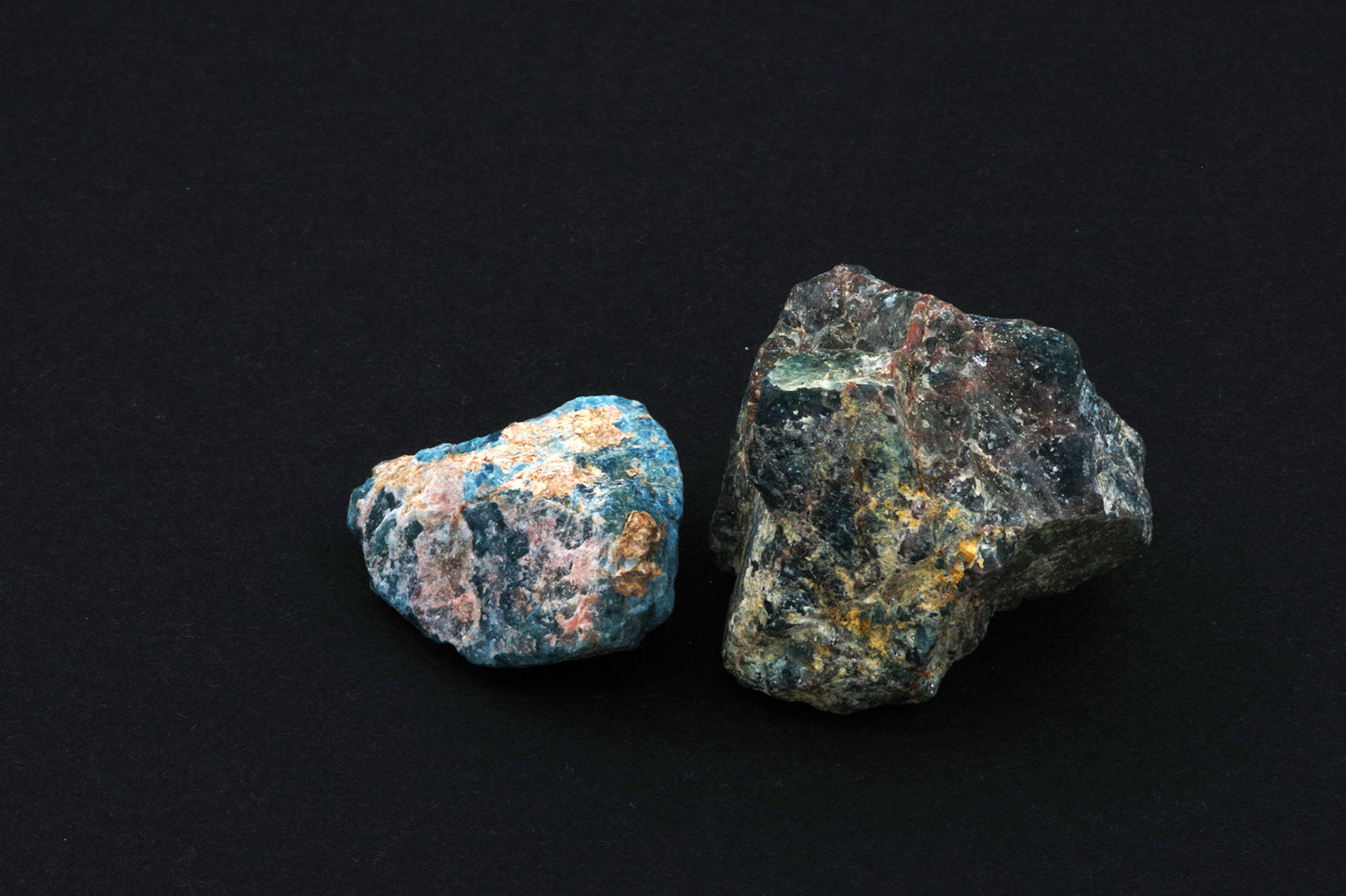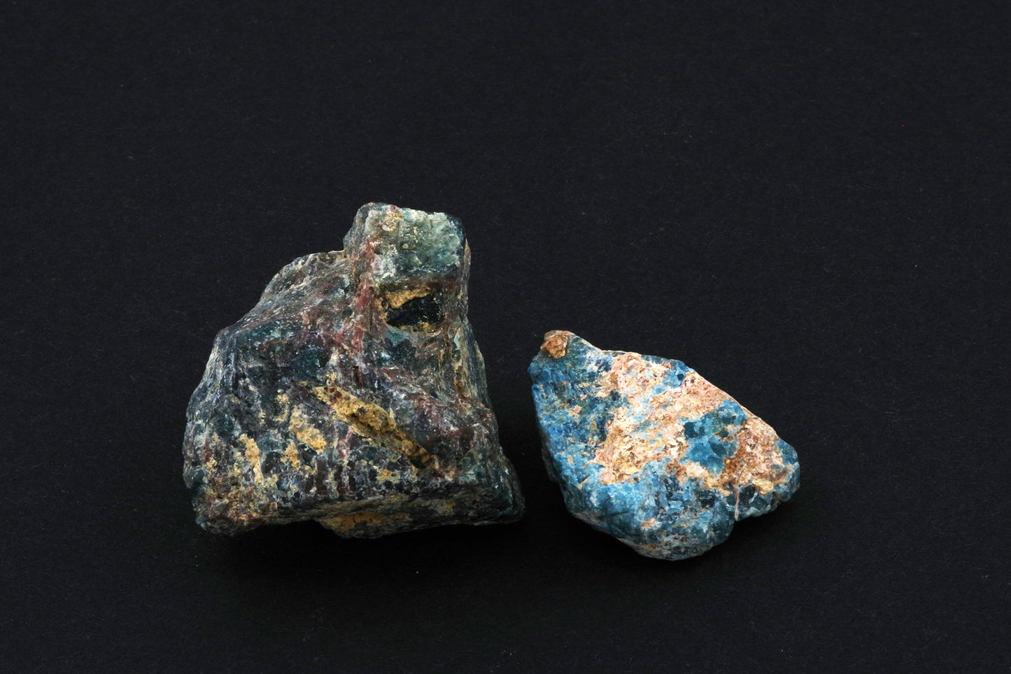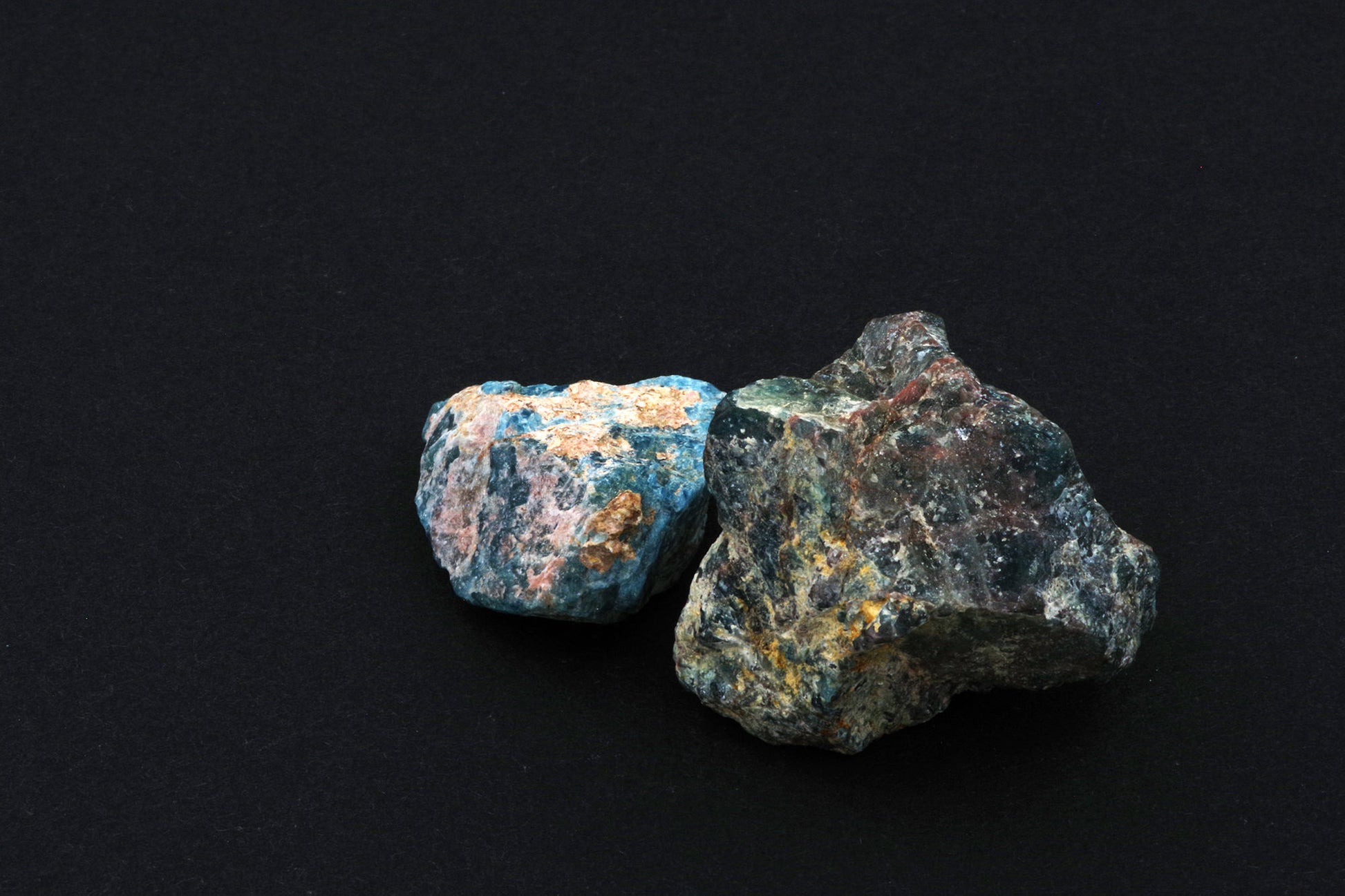 Mineralas: Apatitas išsiskiria savo spalvų įvairove ir natūralia tekstūra, suteikdamas jam išraiškingumo bei spalvingumo.