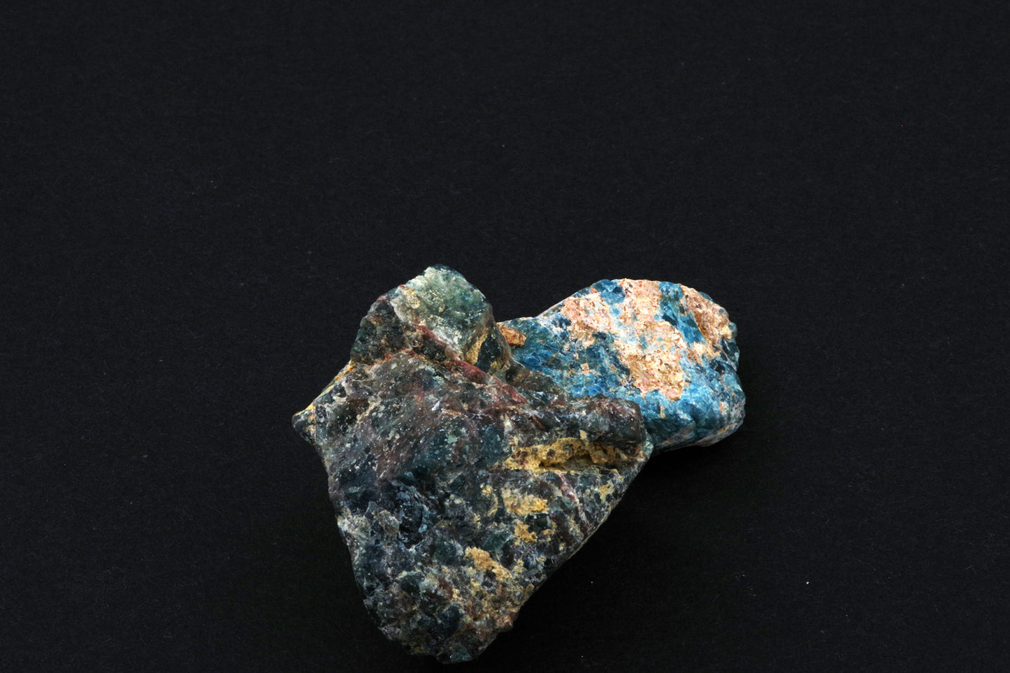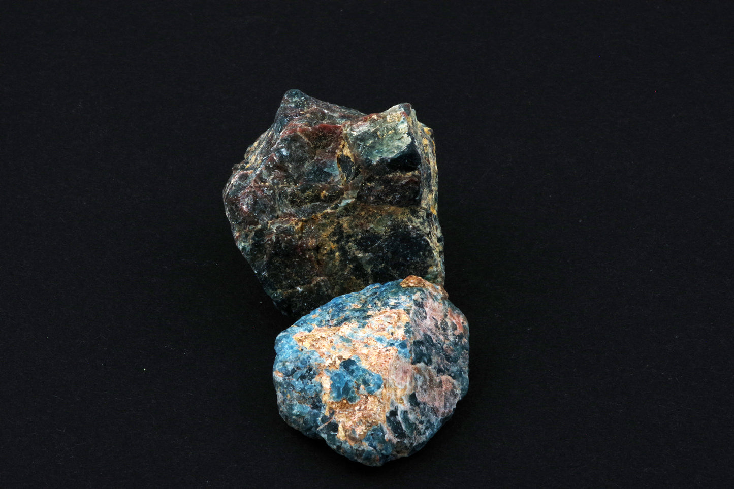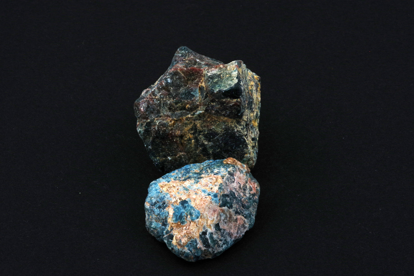 Mineralas: Apatitas išsiskiria savo spalvų įvairove ir natūralia tekstūra, suteikdamas jam išraiškingumo bei spalvingumo.