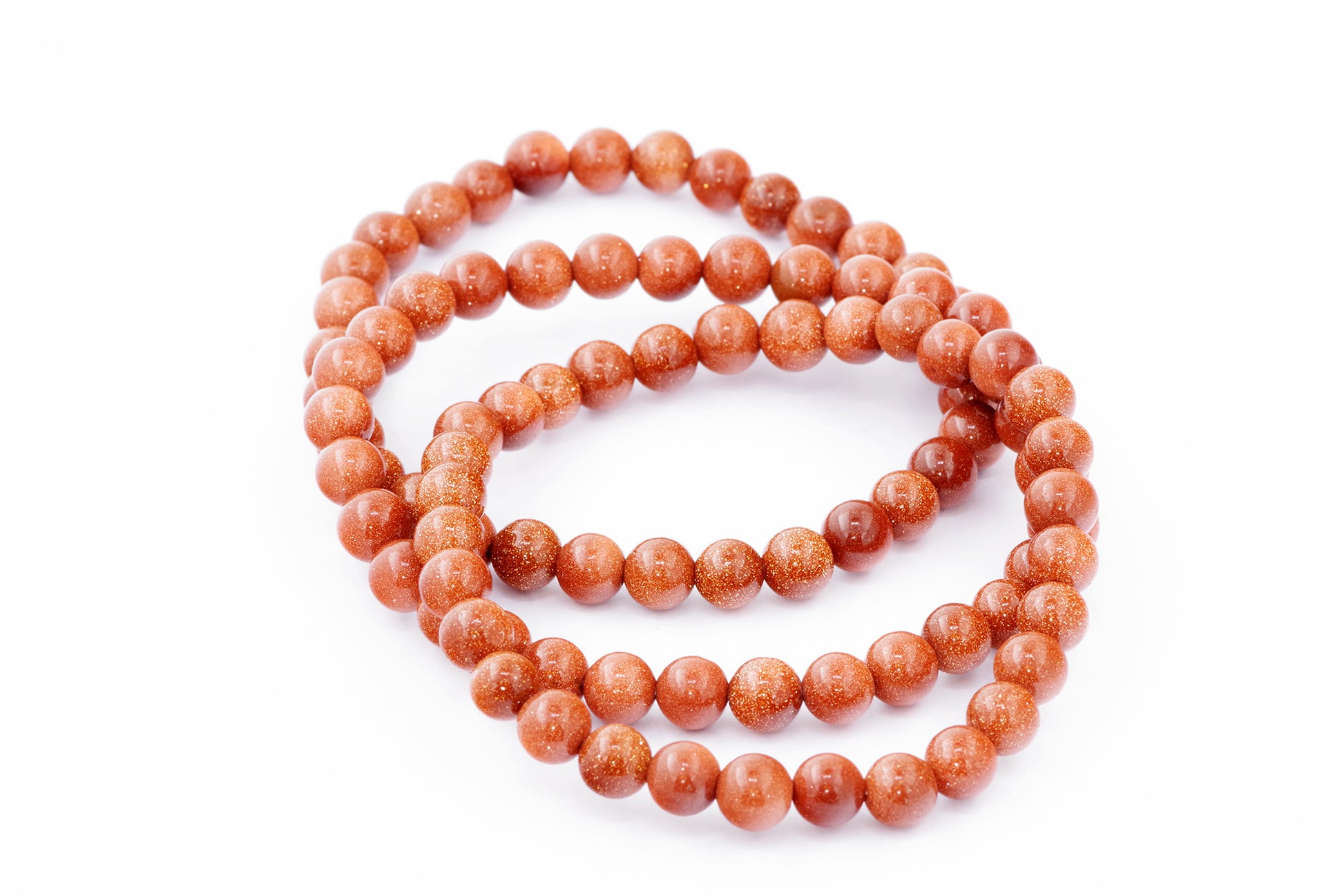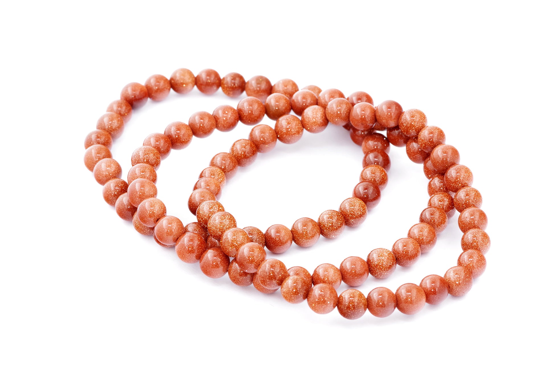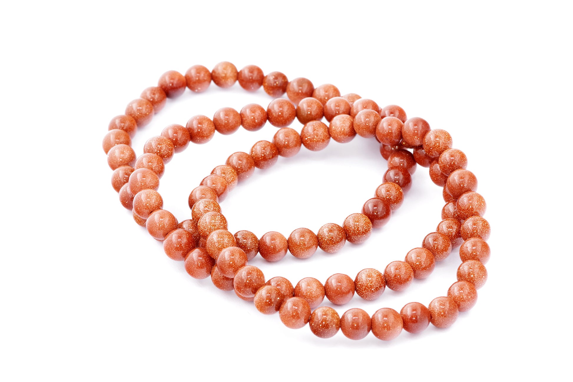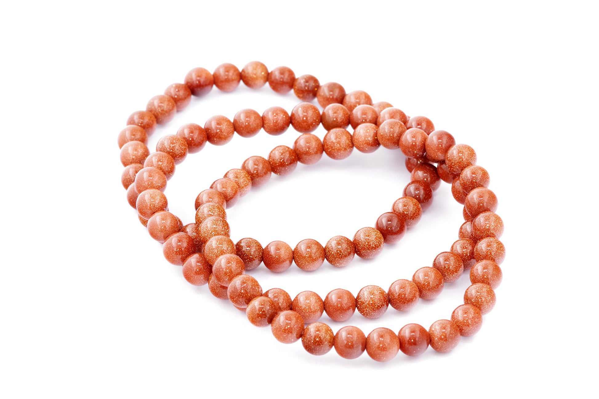 Spalva ir Tekstūra: Aukso akmens karoliukai pasižymi unikaliu blizgesiu, kurį sukuria aukso arba vario spalvos inkluzijos, suteikiančios jiems gyvybingumo ir šilumos.