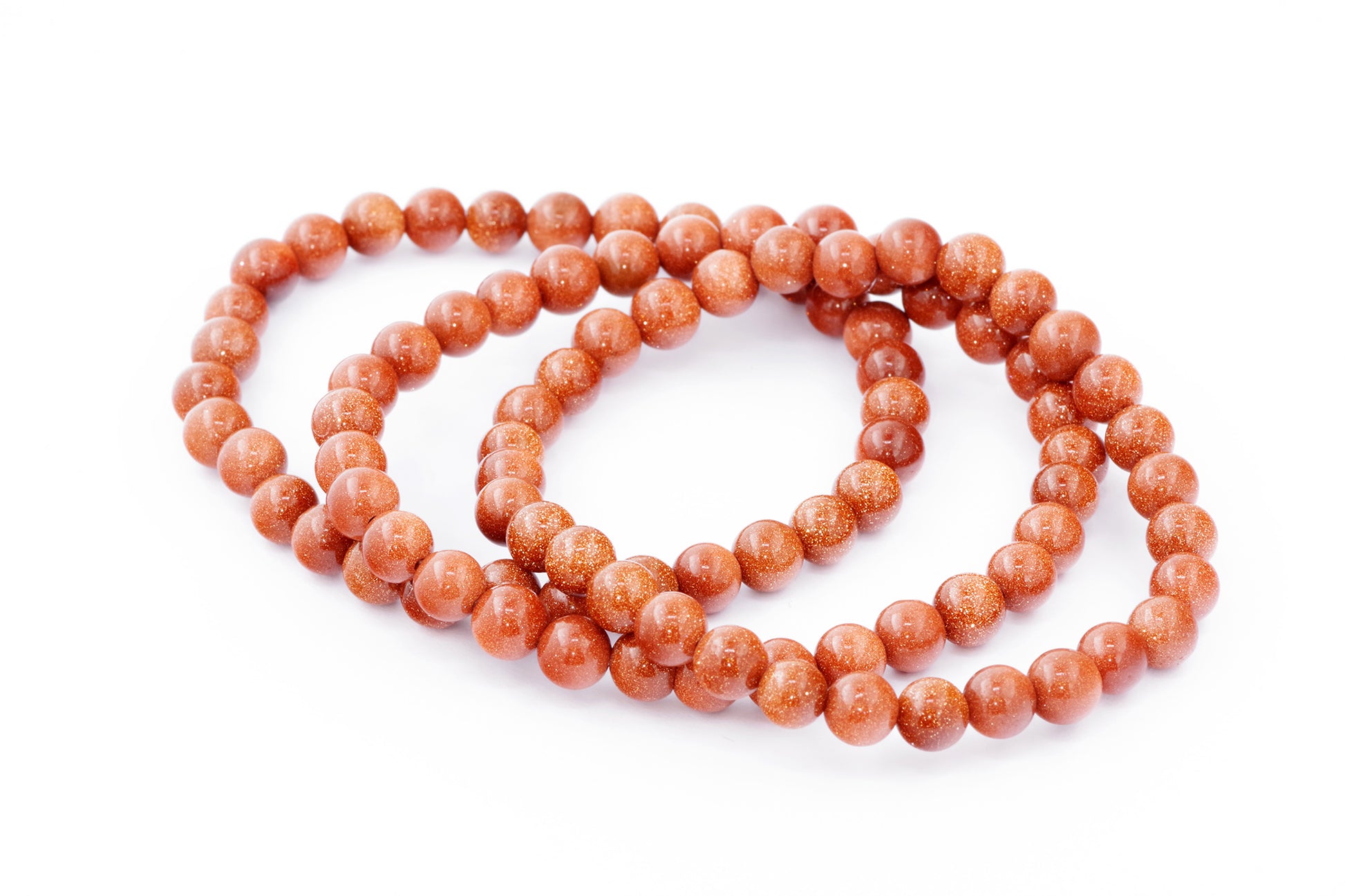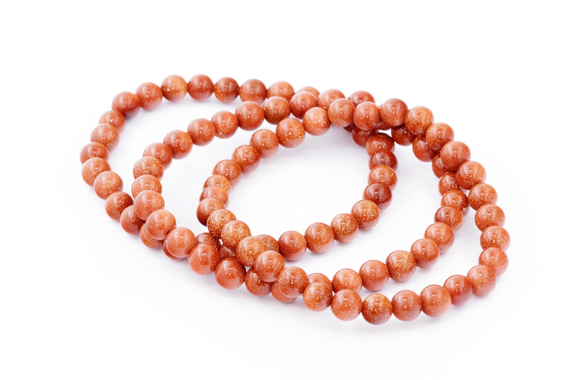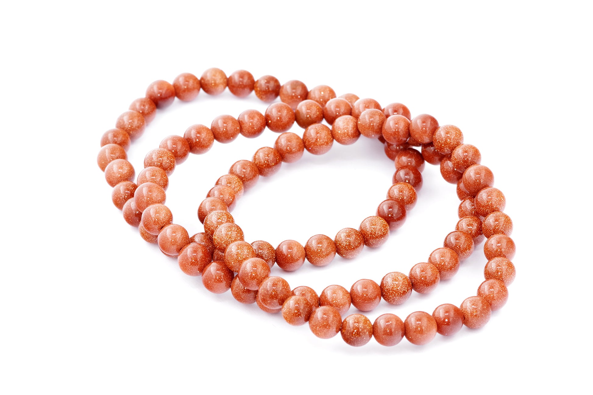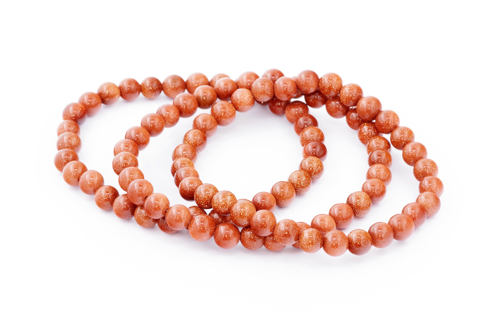 Spalva ir Tekstūra: Aukso akmens karoliukai pasižymi unikaliu blizgesiu, kurį sukuria aukso arba vario spalvos inkluzijos, suteikiančios jiems gyvybingumo ir šilumos.