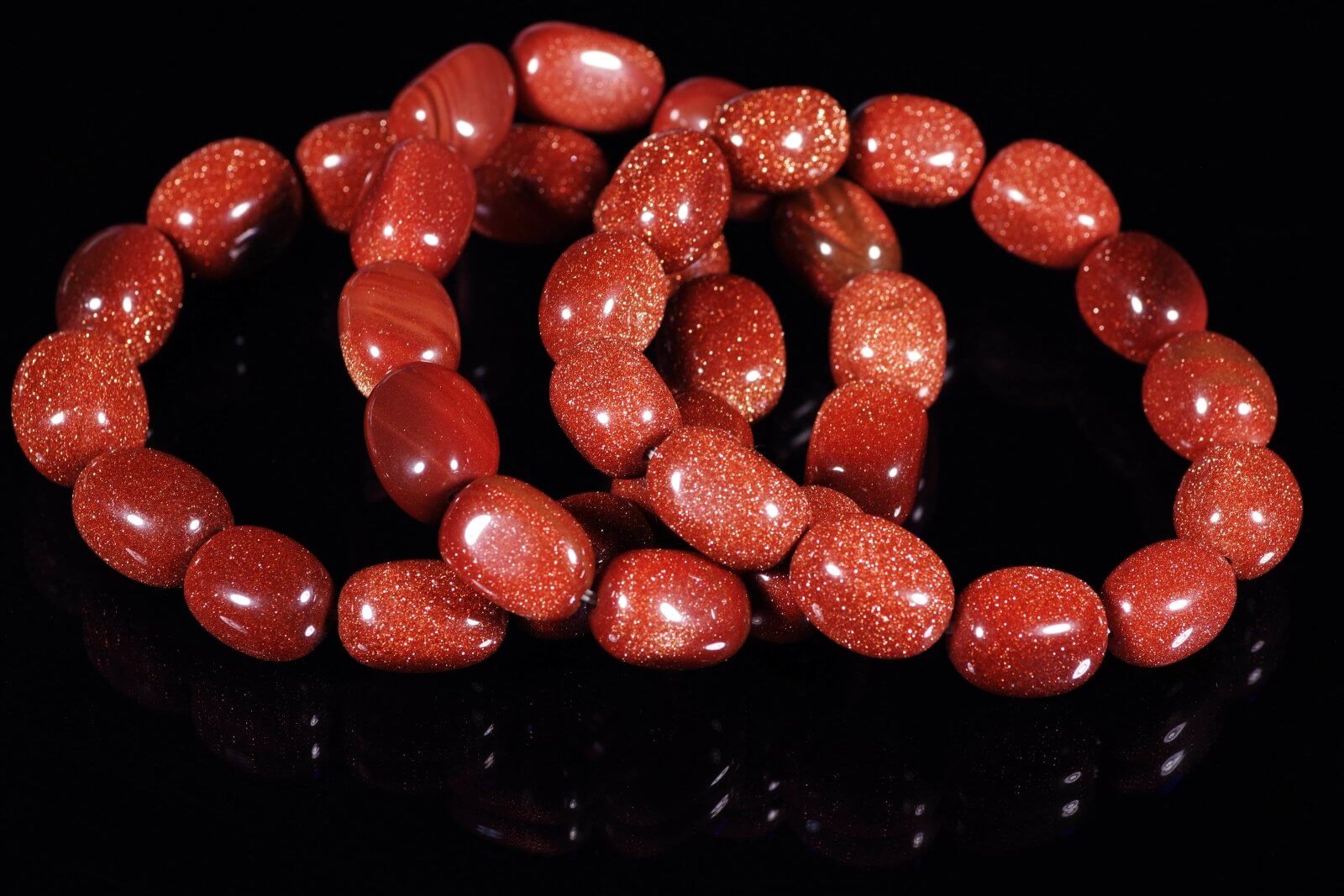 Natūralūs Karoliukai: Apyrankė pagaminta iš aukso akmens karoliukų, turinčių įvairių atspalvių – nuo švelnios aukso iki vario žvilgesio, suteikiančių gyvybingumo ir šilumos.