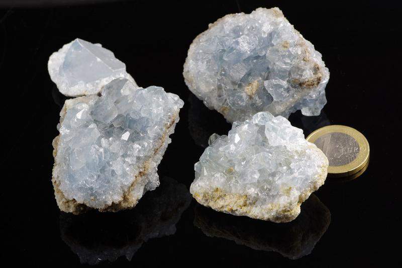 Mineralas: Celestinas (arba celestitas) – natūralus stroncio sulfatas, išsiskiriantis švelnia mėlyna spalva ir rafinuota kristaline struktūra.