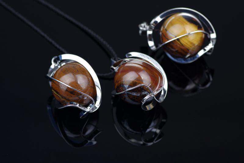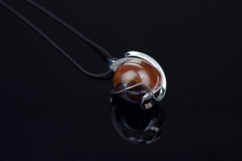 Geležinė Tigro Akis: Akmuo pasižymi gilios bronzos spalvos atspalviais ir unikaliu raštų žaismu, suteikdamas pakabukui gyvybingumo ir stiprybės.