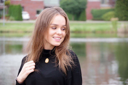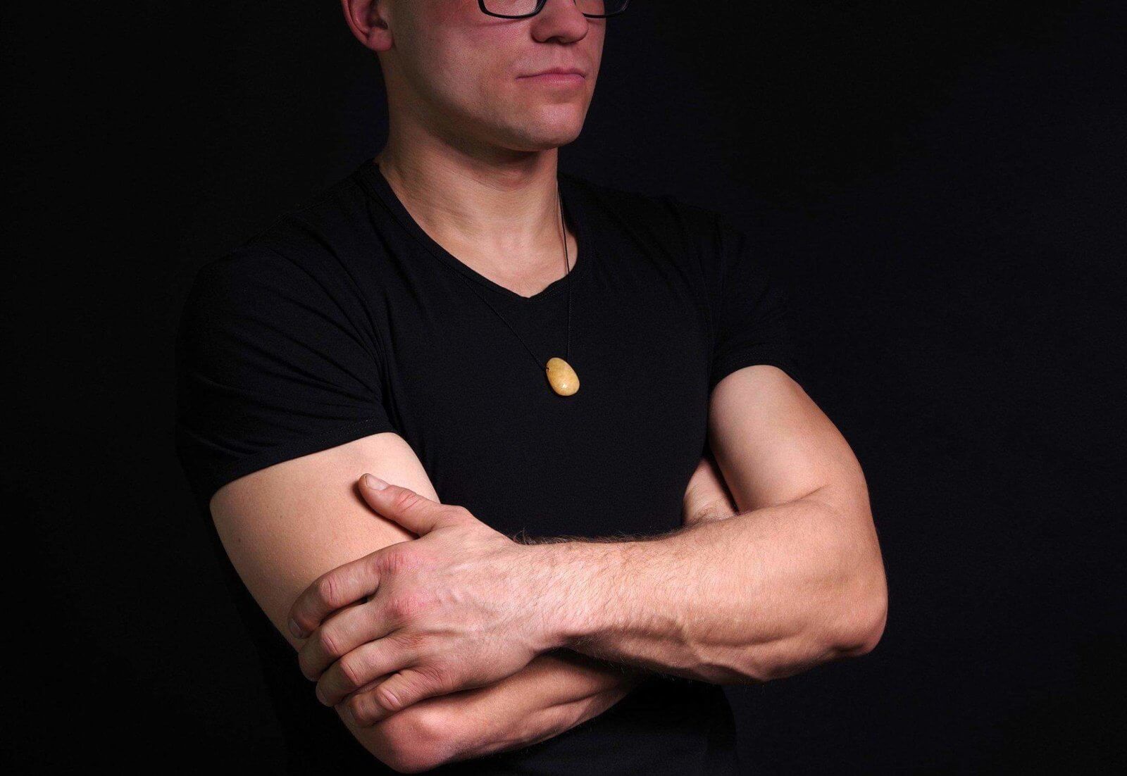 Kalcitas: Akmuo žavi savo šviesiais, kartais skaidriais ar spalvotais atspalviais, kurie suteikia pakabukui šviesumo ir švelnumo pojūtį.