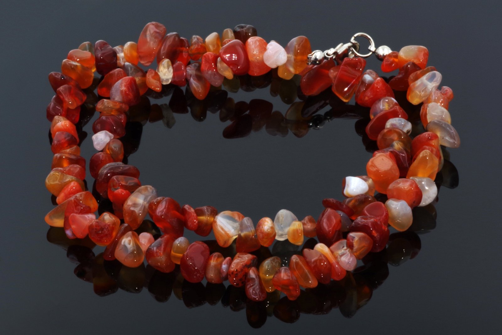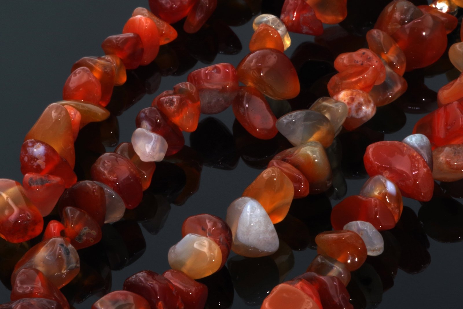 Kviečiame atrasti šių karneolio akmenukų karolių žavingą įvairovę. Neįprasta čipsiukų forma atspindi nepakartojamą gamtos grožį, o šiltos, raudonos ir oranžinės spalvų paletės vibracija sužadina jūsų aistrą ir kūrybiškumą. Šie 45 cm ilgio karoliai puikiai tinka tiek kasdieniam dėvėjimui, tiek ypatingoms progoms.