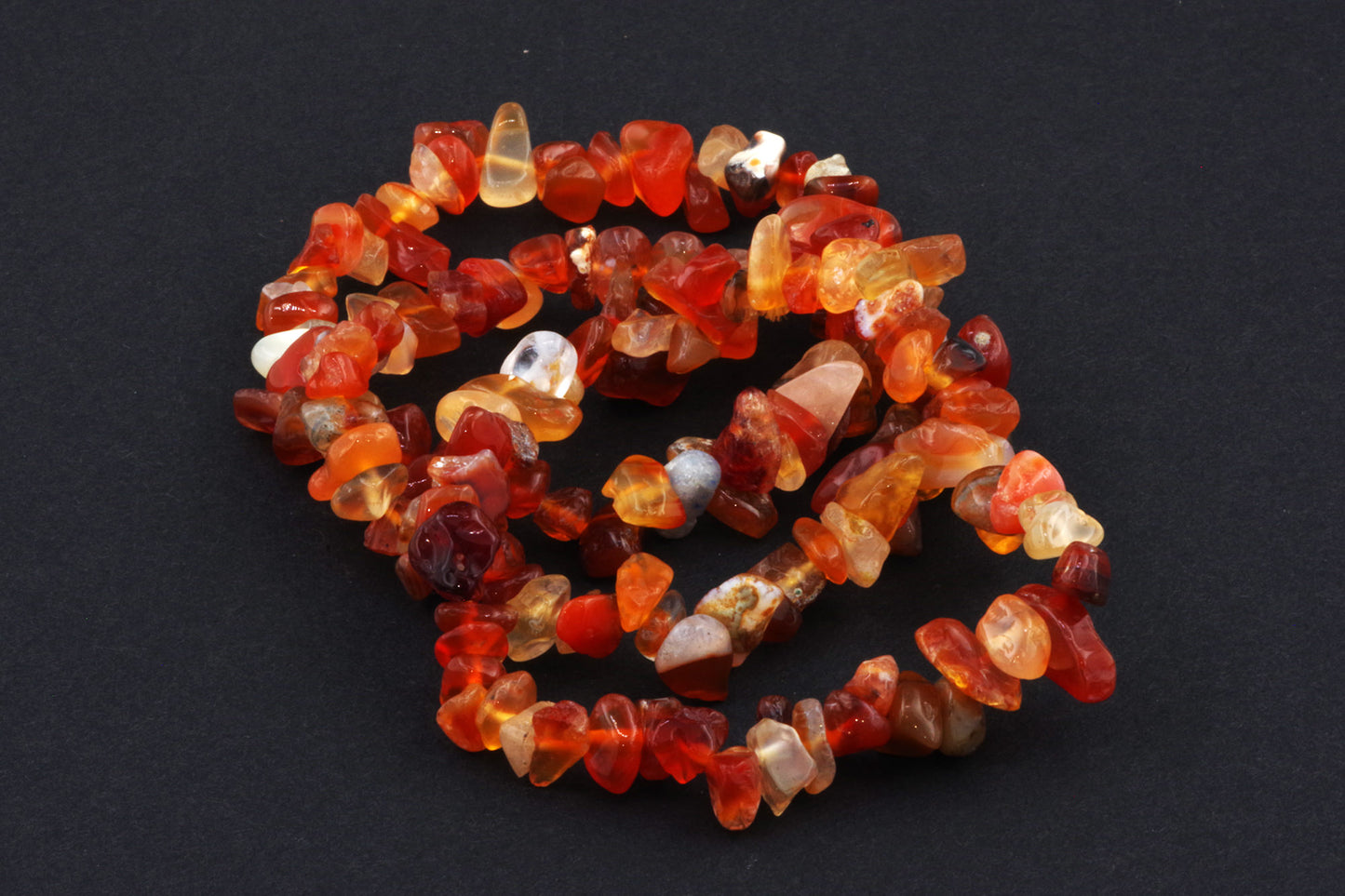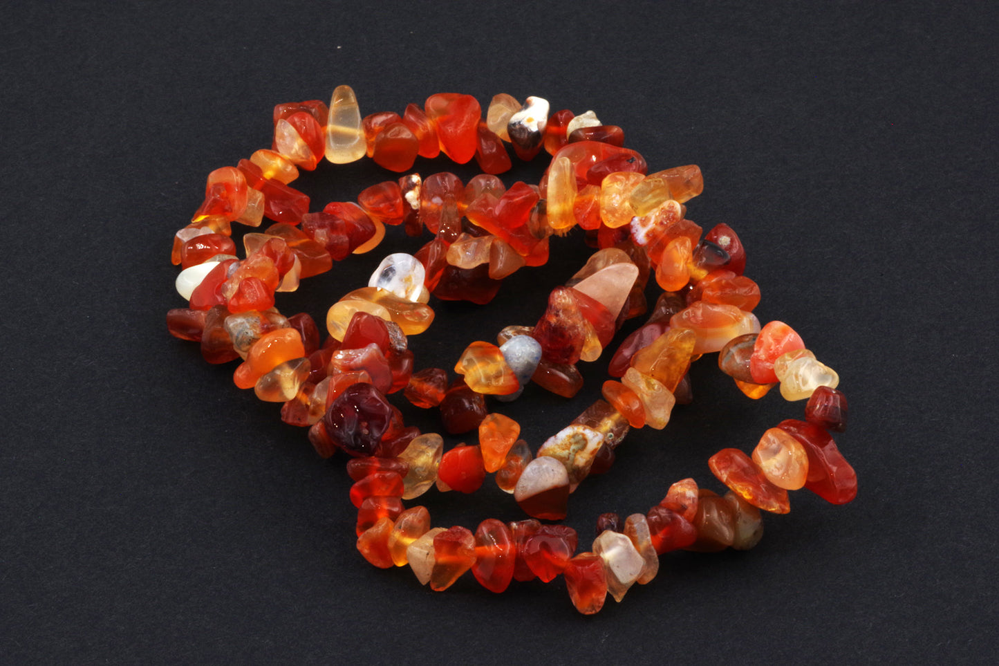 Atraskite ryškų ir energingą papuošalą, kuris išsiskiria unikaliu dizainu bei gyvybingomis energijos savybėmis. Pagaminta iš karneolio akmenų čipsų, ši apyrankė sukuria dinamišką ir žaismingą išvaizdą, žadančią ne tik estetinį malonumą, bet ir emocinį bei energetinį pakylėjimą.