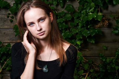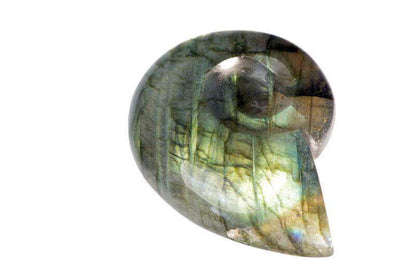 Atraskite unikalų ir menišką papuošalą, kuriame labradoritas, garsėjantis savo hipnotizuojančiu spalvų žaismu ir mistinėmis savybėmis, suformuotas į amonito formos dizainą. Šis pakabukas – tikras simbolis, atspindintis gamtos ir laiko tėkmės grožį bei paslaptis, įkvepiantis dvasinį augimą ir asmeninį tobulėjimą.