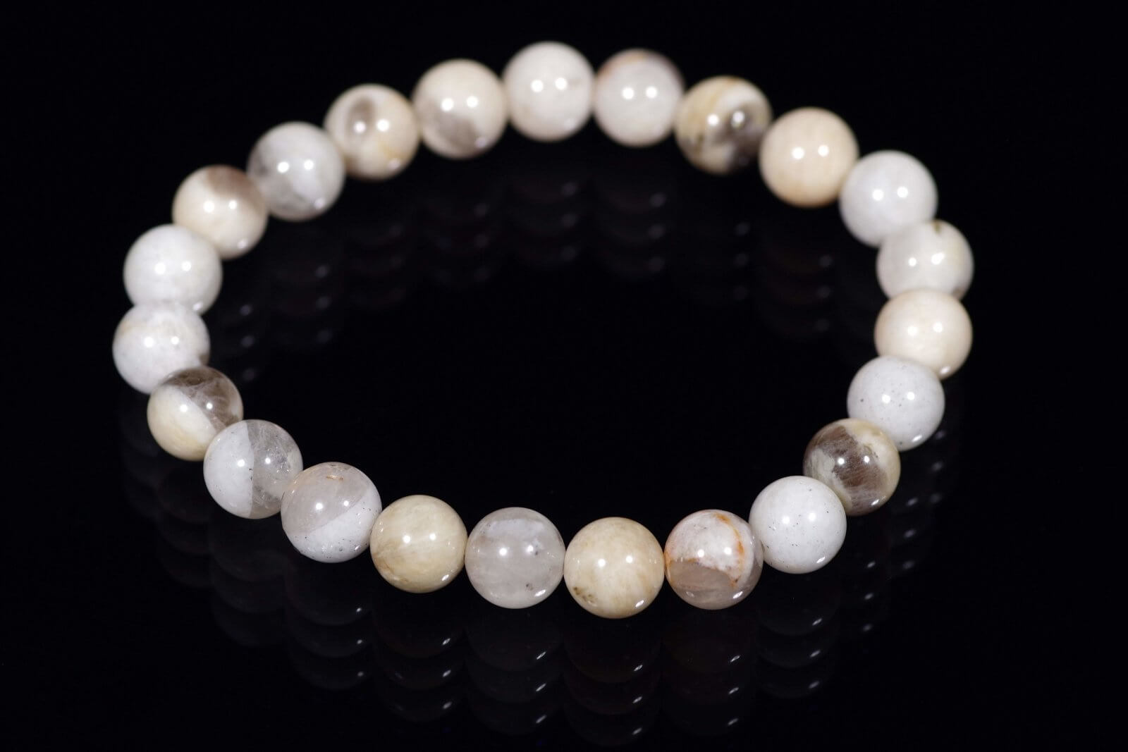 Ryškus ir išraiškingas dizainas: 8 mm skersmens lauko špato akmenėliai sukuria dinamišką apyrankės vaizdą, pabrėždami nešiotojo individualumą.