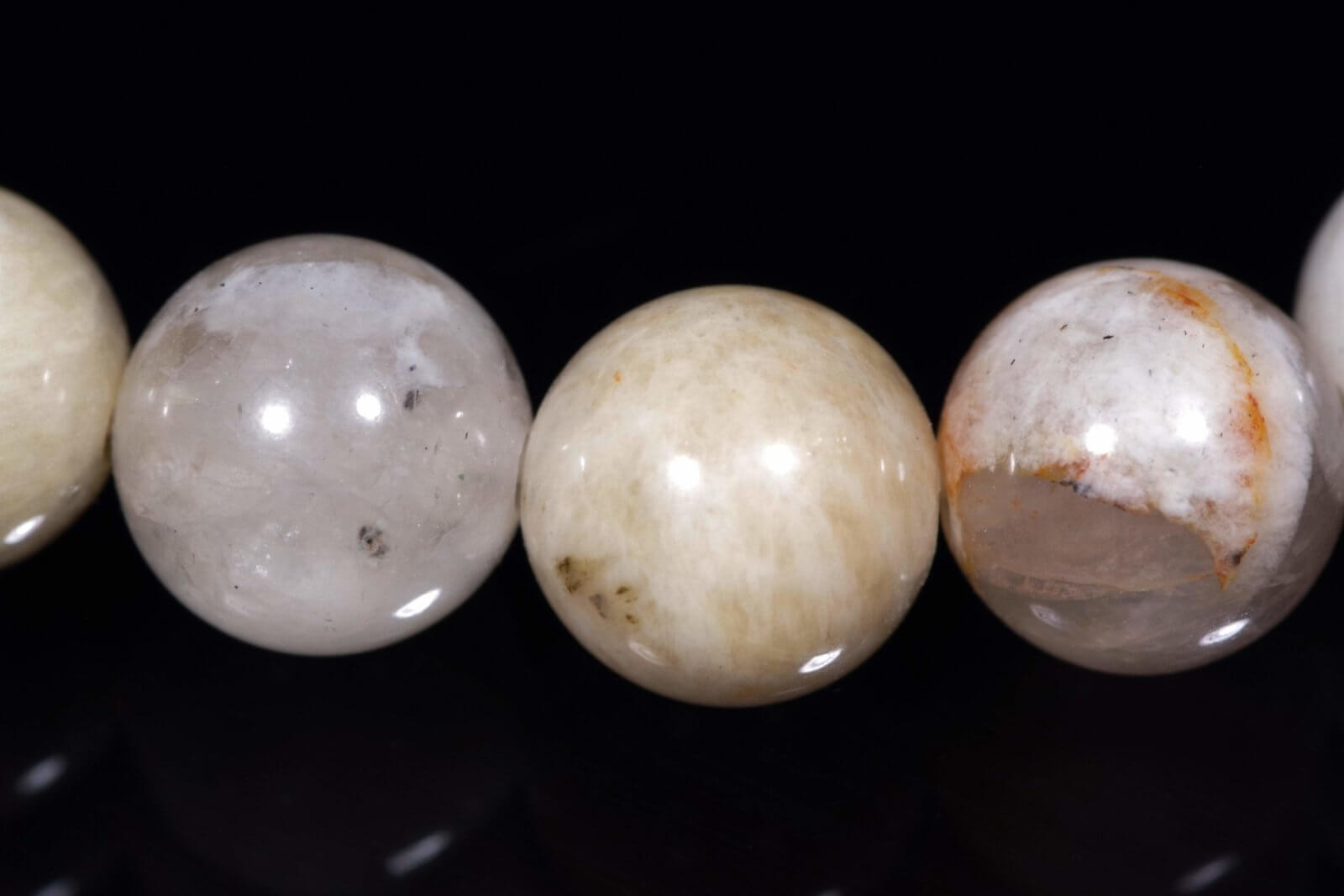 Natūralių spalvų harmonija: Lauko špatas demonstruoja įvairių natūralių atspalvių žaismą, suteikdamas apyrankei gilų žemės ir gamtos pojūtį.