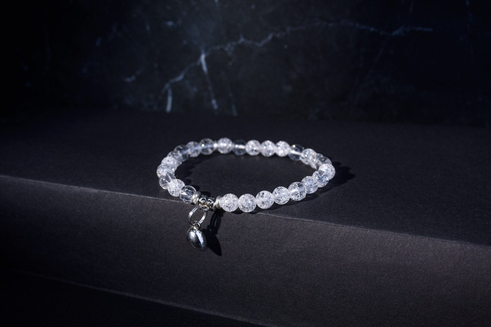 Atraskite papuošalą, kuris tarsi gaudo ir atspindi šviesos žaismą – „Nuoširdi Sąjunga“ apyrankė iš ledo kristalo. Jos skaidrumas ir švaros pojūtis neša ramybę, o paviršiuje žaidžiantys šviesos atspindžiai sukuria subtilią magiją, įkvepiančią pasitikėjimą ir dvasinį aiškumą.
