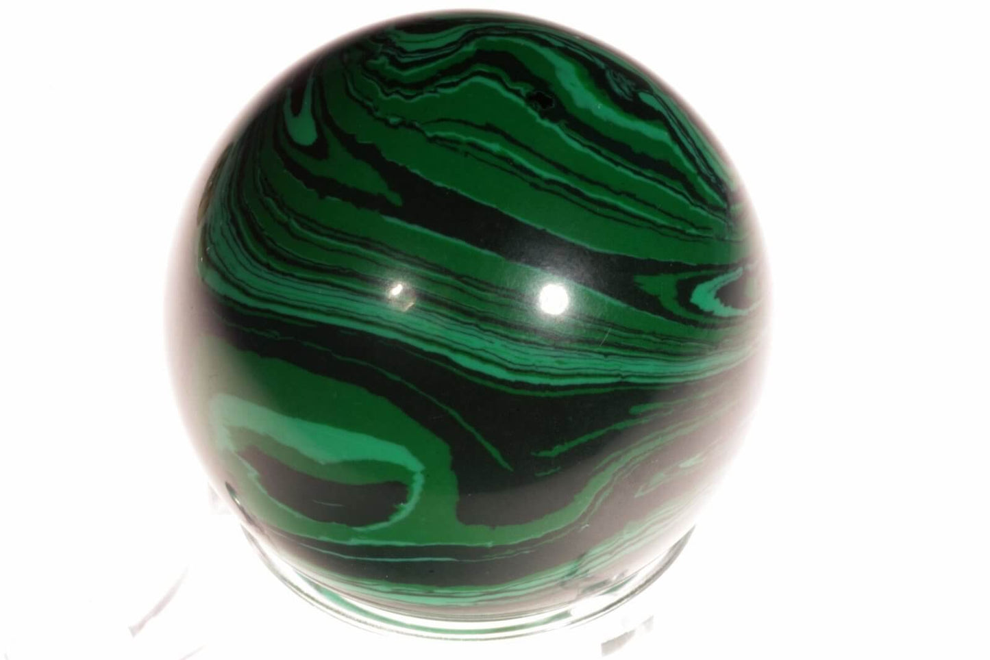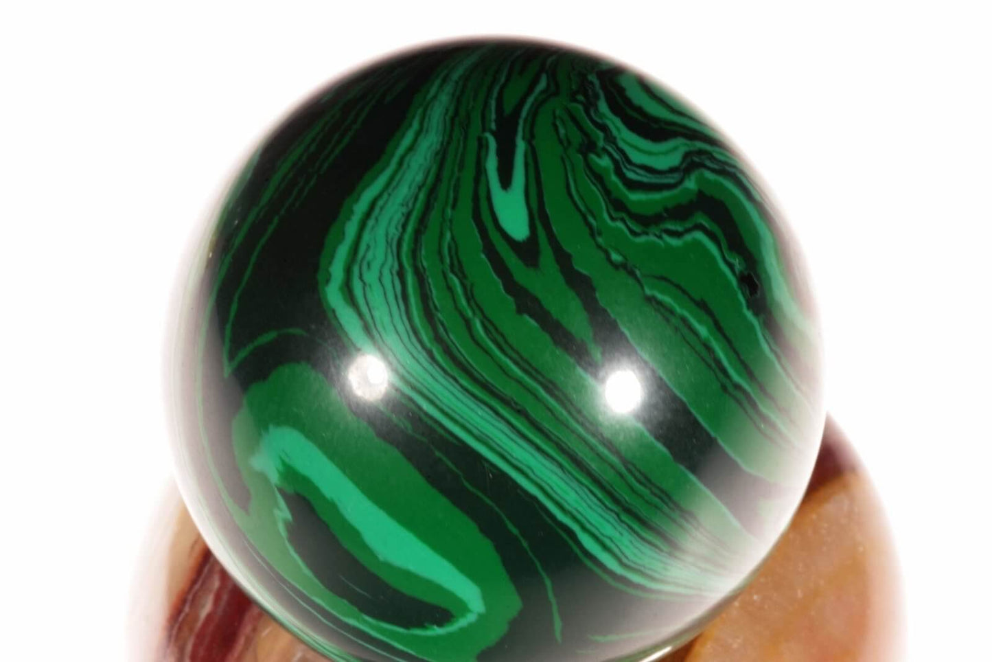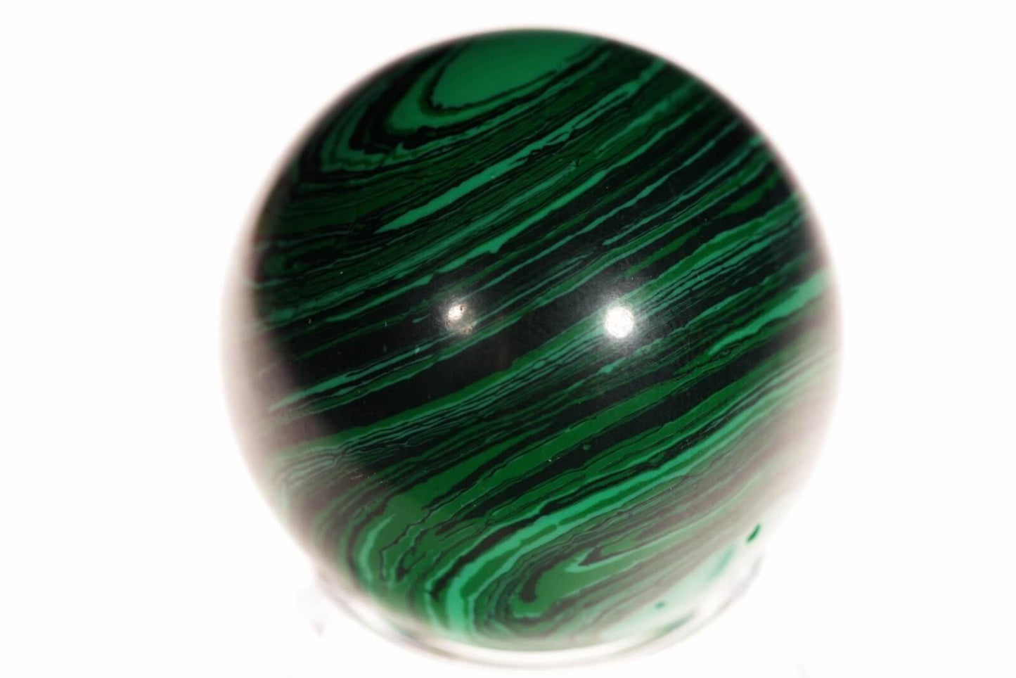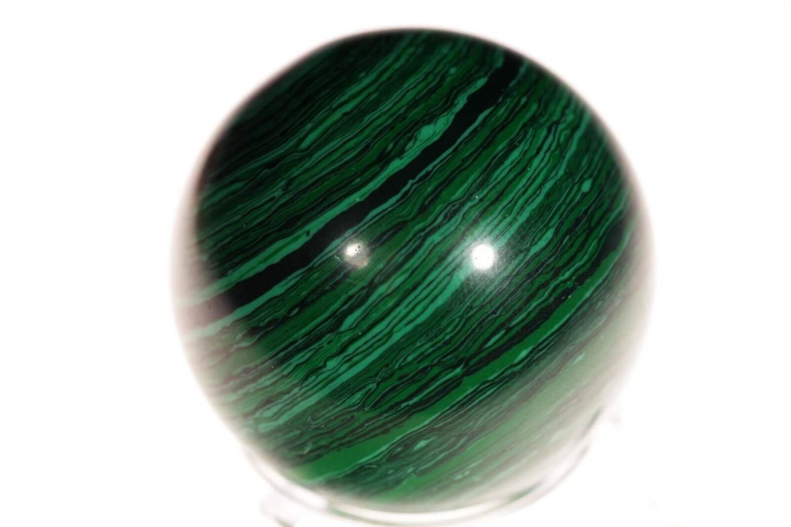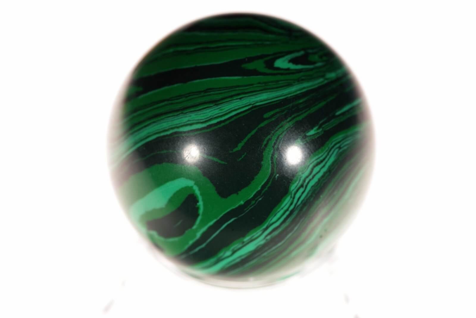 Įsigykite šią 40 mm skersmens imituoto malachito sferą ir leiskite jos unikaliam dizainui bei dvasinei energijai įnešti spalvų ir harmonijos į jūsų gyvenamąją erdvę.