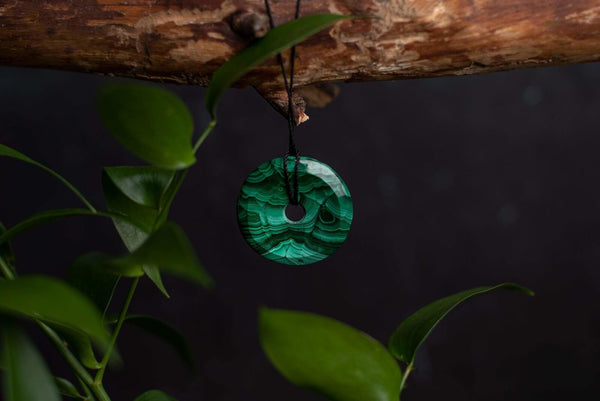 Malachito Pakabukas "Diskas 30mm" – gamtos elegancijos ir dvasinės harmonijos simbolis