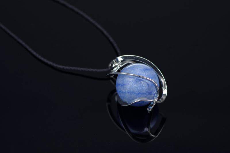 Akmuo: Mėlynas kvarcas, pasižymintis giliomis mėlynos spalvos tonacijomis ir skaidrumu, suteikia pakabukui spalvingą ir ramybę spinduliuojantį žavesį.