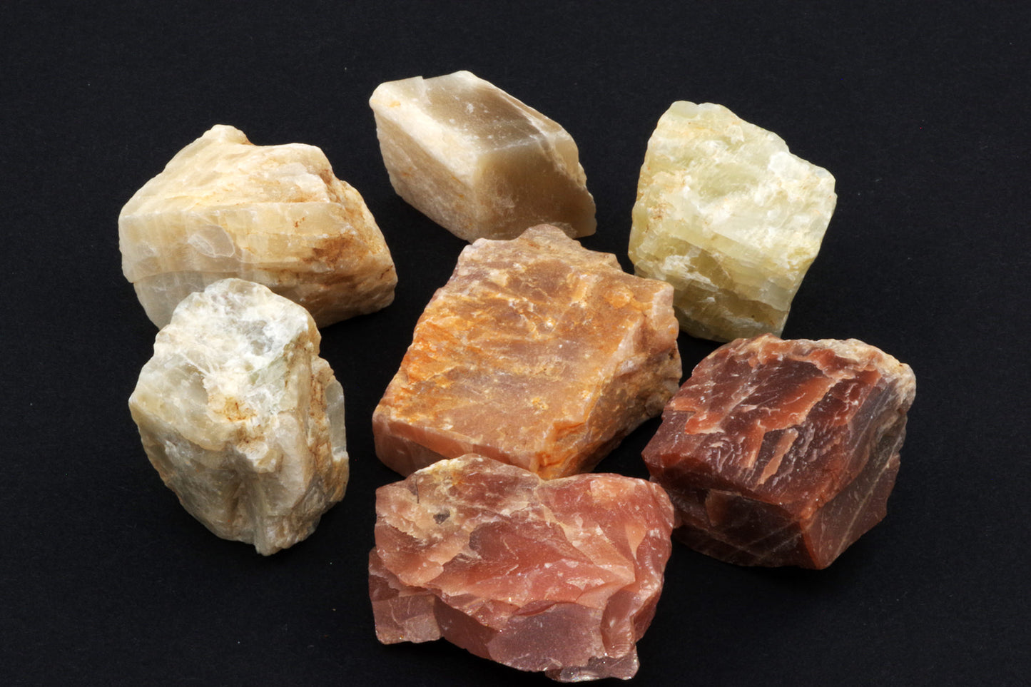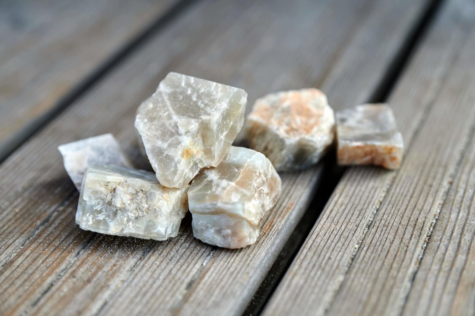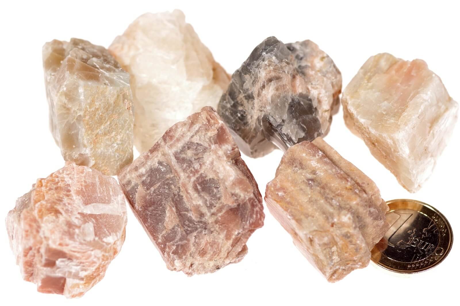 Mėnulio akmuo – Neapdirbtas yra natūralus, žaliavinis brangakmenis, pasižymintis švelniu švytėjimu ir blizgesiu, primenančiu mėnulio šviesą. Priklausantis ortoklazo feldspato grupei, šis akmuo dažniausiai pasižymi baltos, kreminės arba šviesiai mėlynos spalvos atspalviais su charakteringu aduliariškuoju blizgesiu. Kiekvienas akmuo yra unikalus savo natūraliu grožiu ir neišdirbta forma.