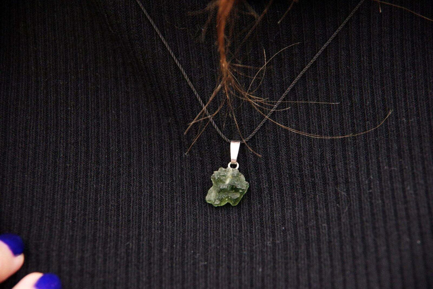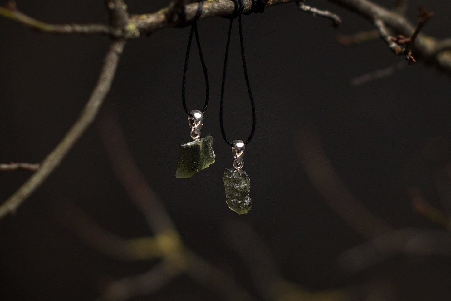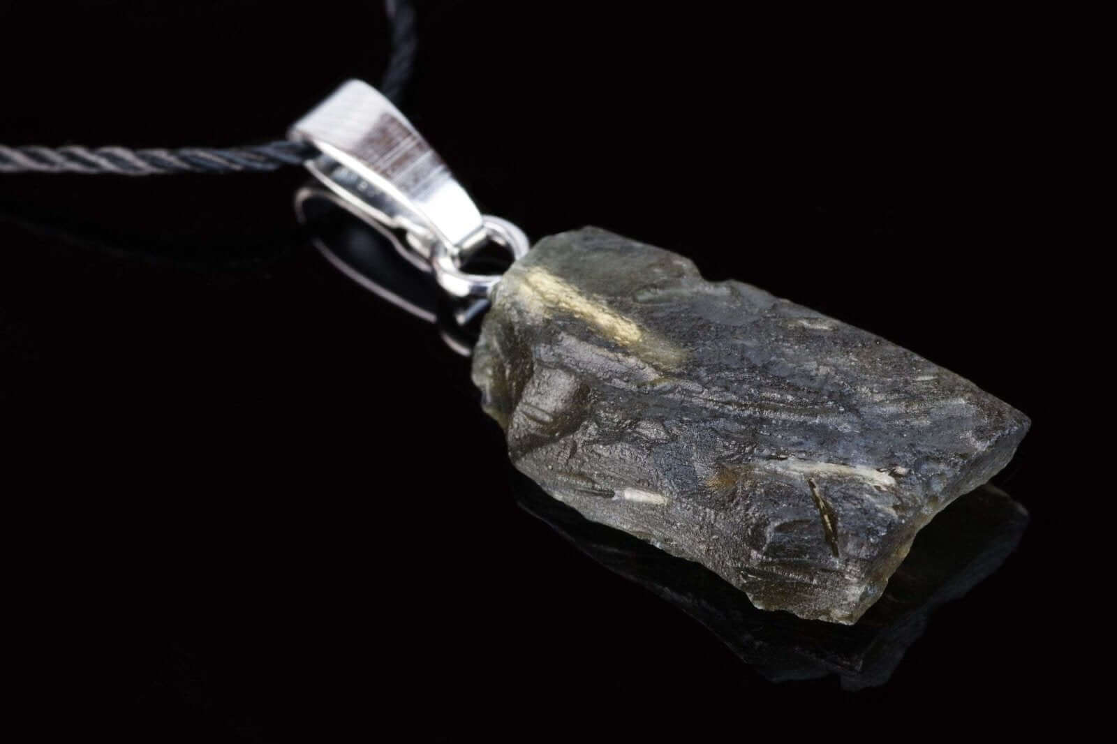 Akmuo: Moldavitas – retas akmuo, pasižymintis intensyvia žalia spalva ir stikliniu blizgesiu, suteikiantis pakabukui unikalų bei kosmišką išvaizdą.
