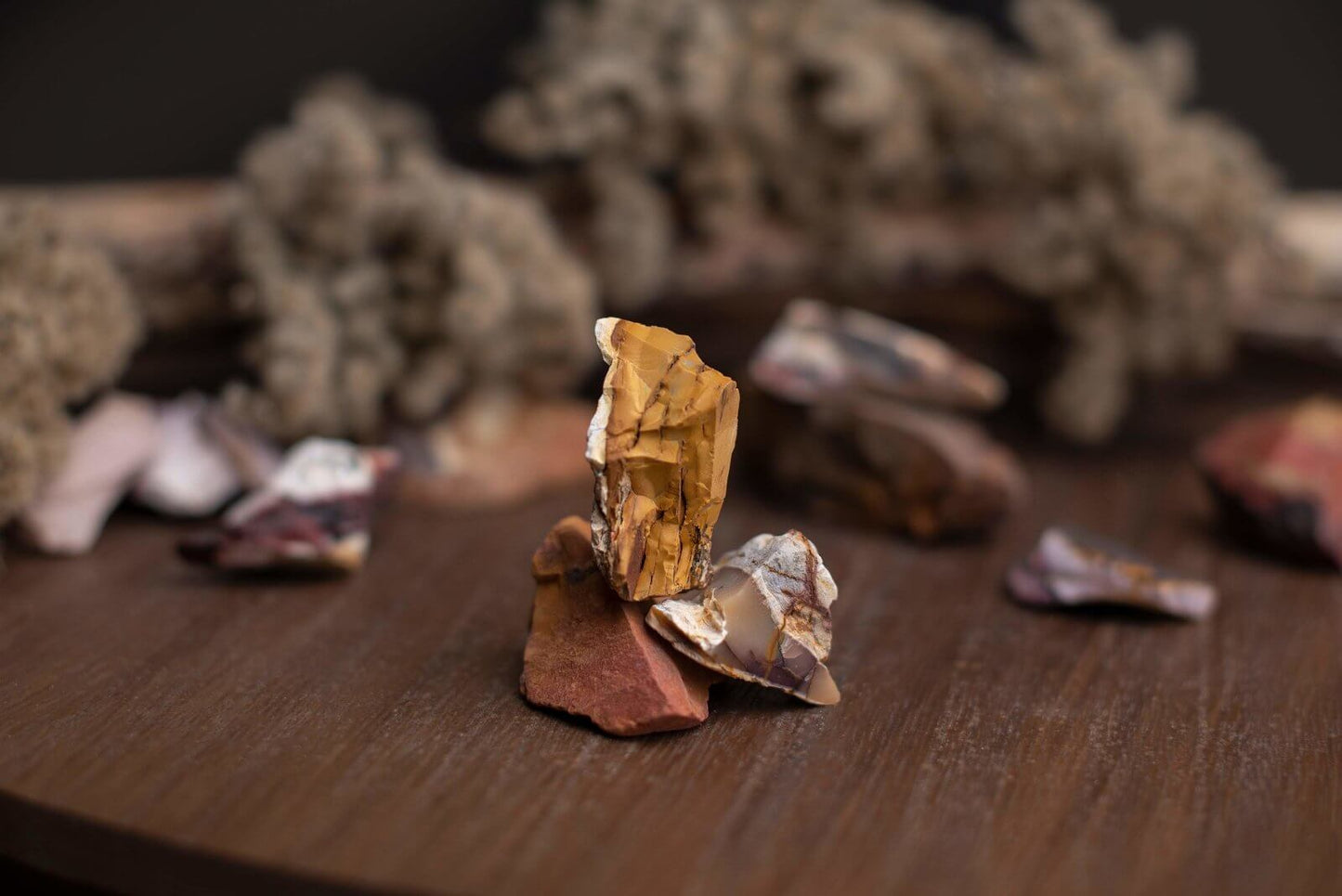 Mukaito Jaspis – Neapdirbtas yra natūralus, žaliavinis jaspis, išsiskiriantis savo unikaliu spalvų gama ir natūraliais raštais. Kilęs iš Australijos, šis mineralas pasižymi ryškiomis raudonomis, geltonomis, rausvomis ir kartais juodomis atspalvėmis, suteikiančiomis jam ypatingą estetinį patrauklumą. Tai populiarus pasirinkimas tarp kolekcionierių ir brangakmenių mėgėjų dėl savo autentiškumo ir manomų gydomųjų savybių.
