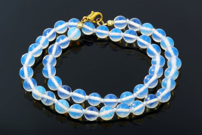 Atraskite dangišką eleganciją ir unikalų blizgesį su mūsų 45 cm ilgio opalito karoliais, sudarytais iš 8 mm skersmens karoliukų. Kiekvienas karoliukas atskleidžia subtilų mėlynos šviesos spindesį, kuris primena dangaus ramybę ir mistinį grožį. Šie karoliai – puikus pasirinkimas tiems, kurie vertina išskirtinumą ir nori pridėti savo įvaizdžiui užuominą į paslaptingą eleganciją.