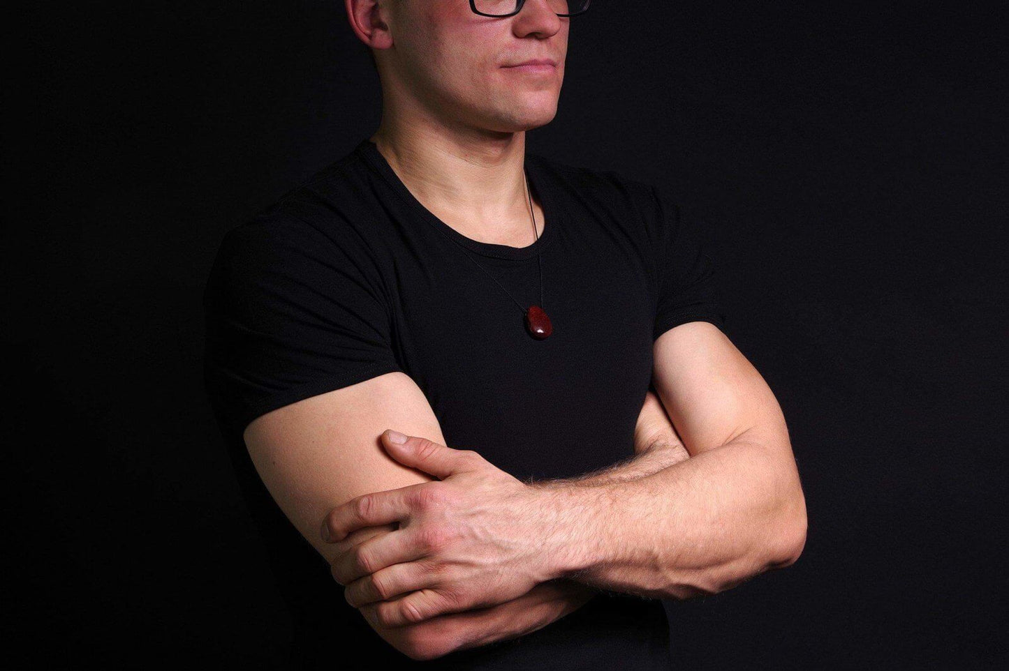 Akmuo: Raudonoji tigro akis, pasižyminti gilios raudonos spalvos intensyvumu ir hipnotizuojančiais atspindžiais, suteikia pakabukui gilumą bei dinamiškumą.