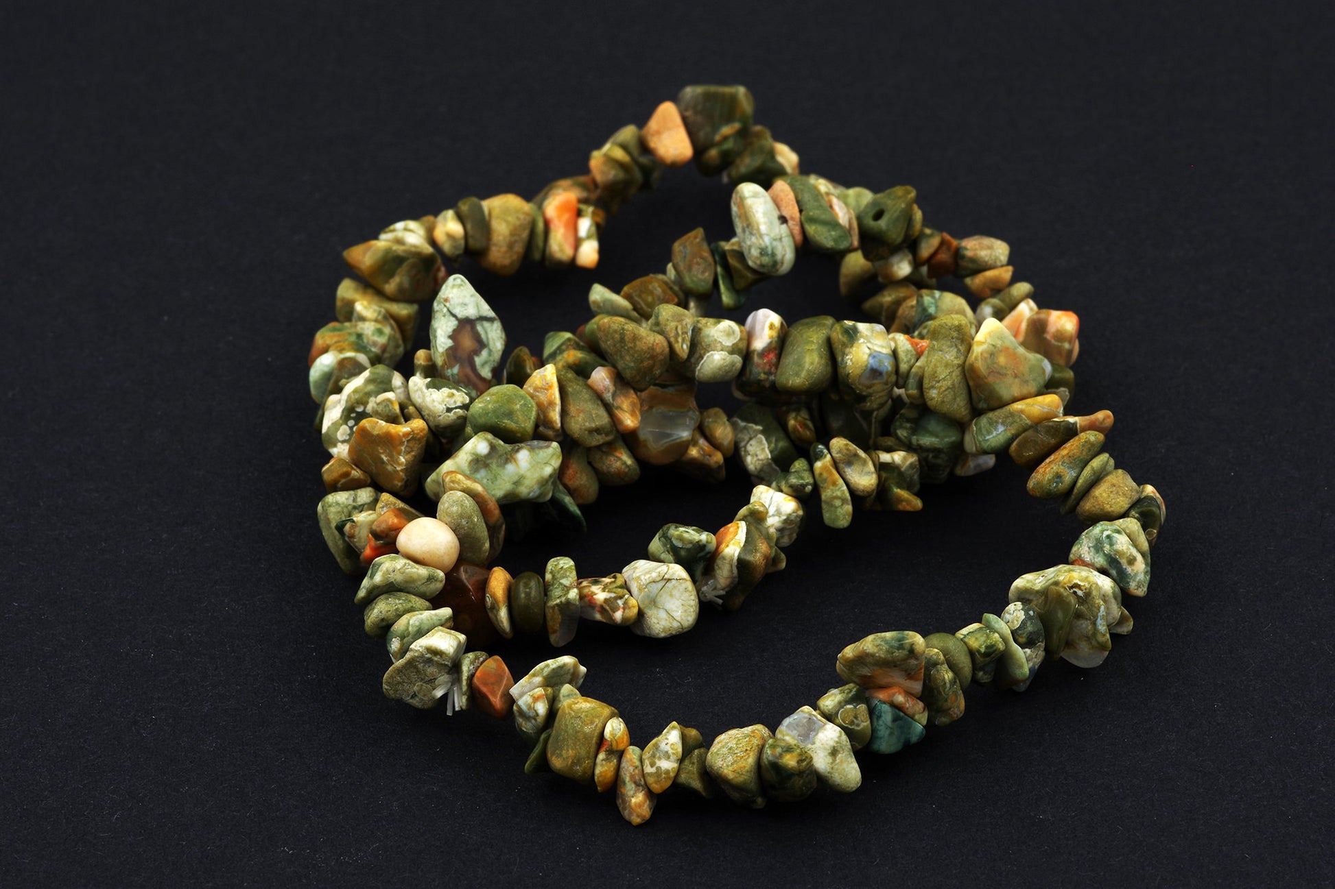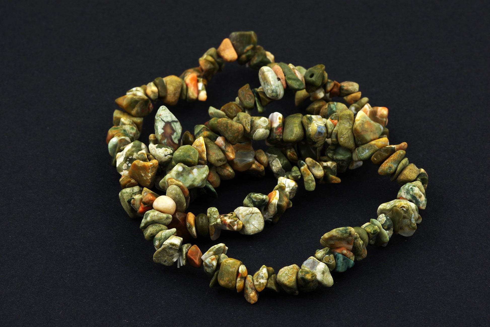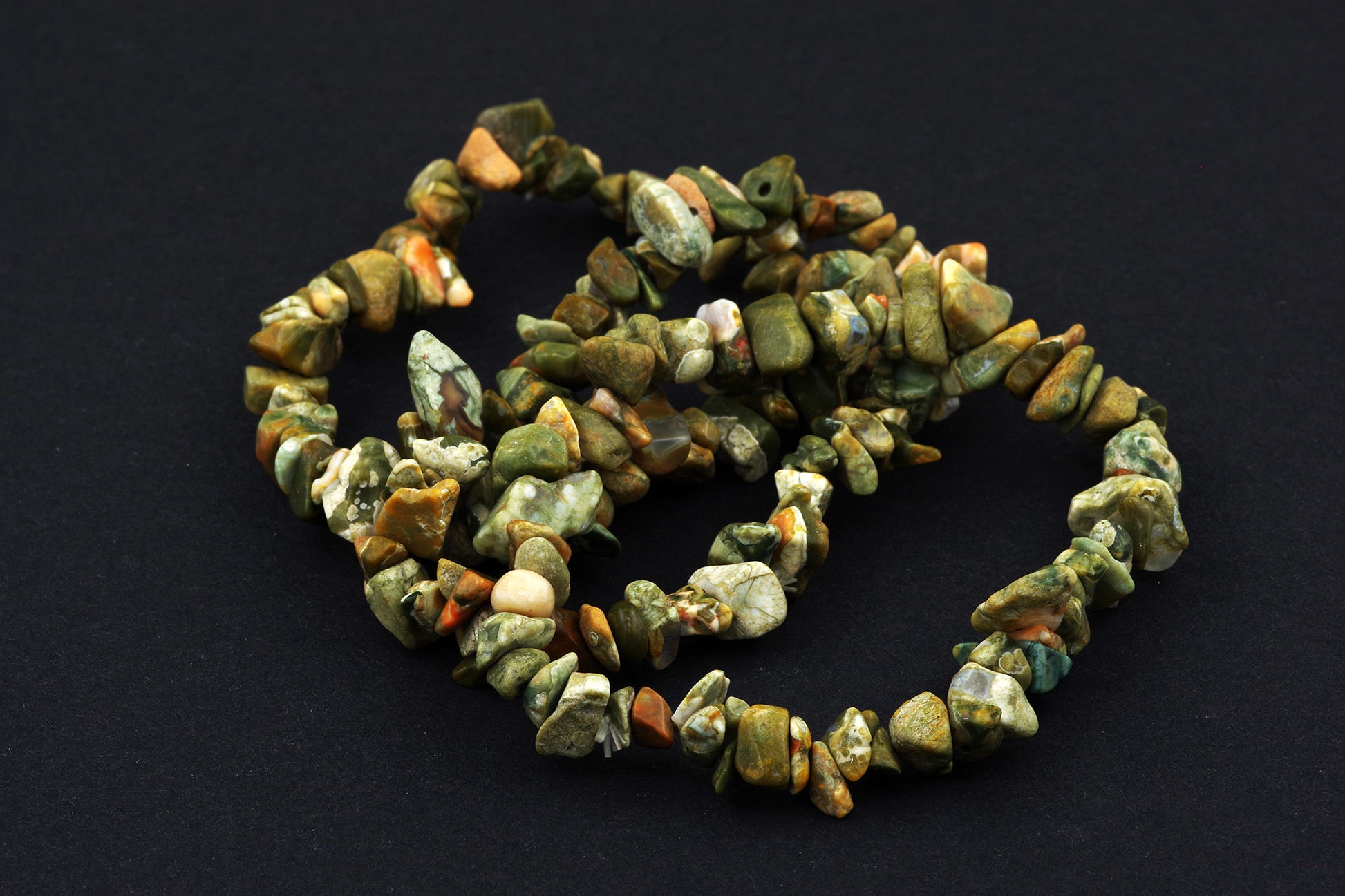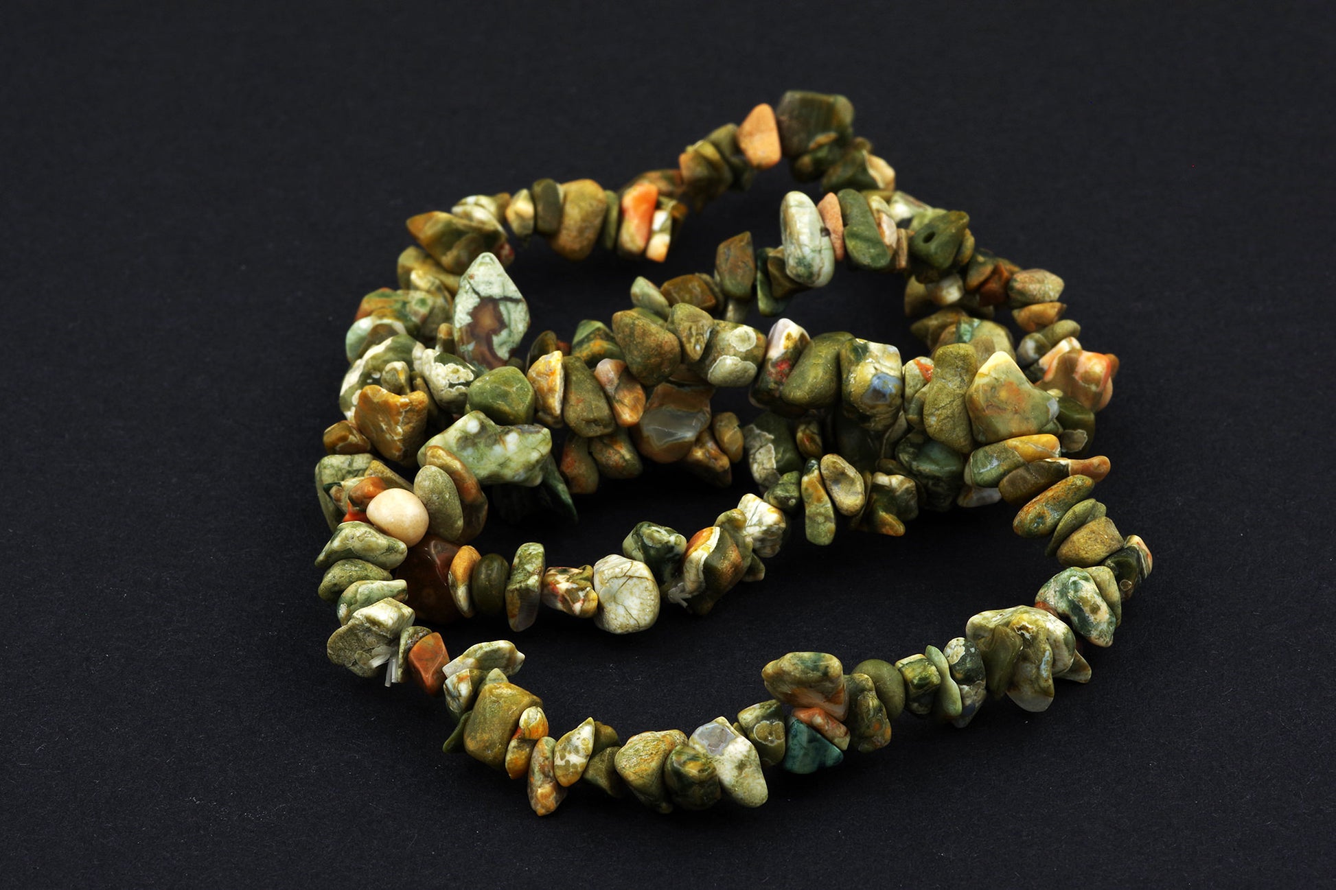 Atraskite spalvingą ir gamtos įkvėptą papuošalą – Riolito Apyrankę "Čipsiukai". Sukurta iš smulkių, natūralios formos riolito akmenų čipsų, ši apyrankė išsiskiria unikaliomis spalvomis, natūralia tekstūra ir įspūdingu dizainu, puikiai tinkančiu tiems, kurie vertina akmenų įvairovę ir išraiškingus aksesuarus.