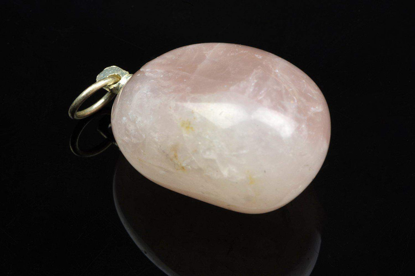 Rožinio kvarco pakabukas "Akmenukas" – tai subtilus ir švelnus papuošalas, kuriame rožinis kvarcas, žinomas dėl savo švelnios rožinės spalvos ir meilės energijos, yra suformuotas į mažą, akmenuko formos gabalėlį. Šis pakabukas yra idealus pasirinkimas tiems, kurie vertina papuošalus, nešančius švelnumo, emocinės pusiausvyros ir meilės simboliką.