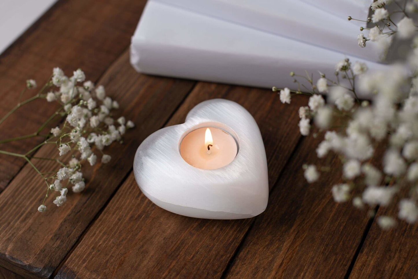 Ramybės Skatinimas: Selenitas teikia ramybės jausmą, padeda atsikratyti streso bei sukuria šviesos žaismą, kai įdedama žvakė.