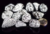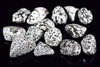 Kristalinė struktūra: Kristobalitas tamsiame akmens fone sudaro baltas dėmeles, primenančias snaiges.