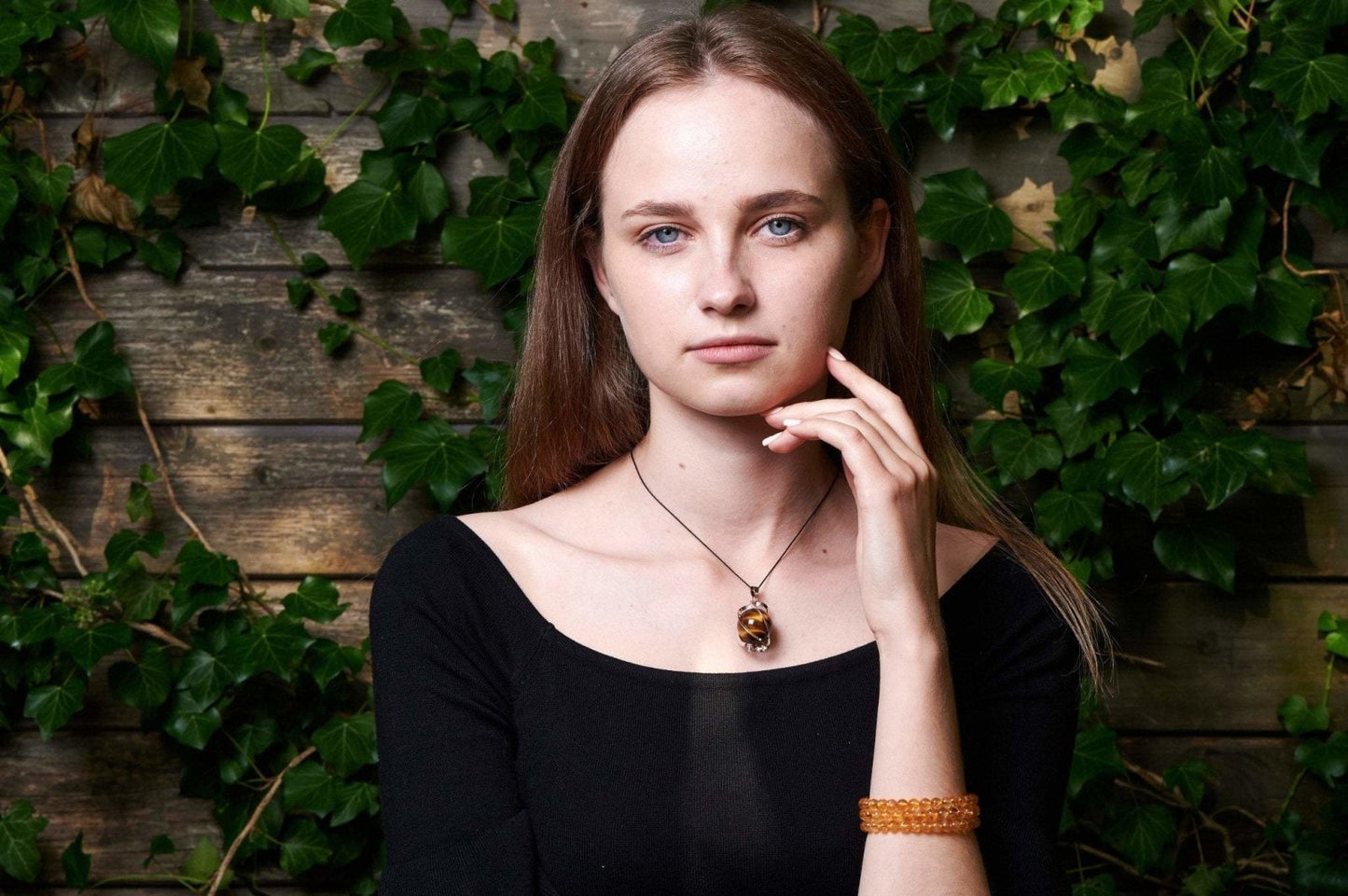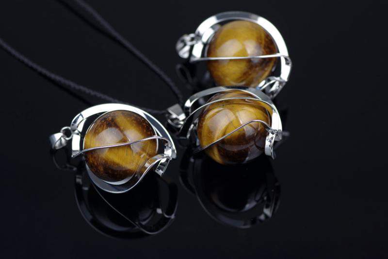 Akmuo: Tigro Akis, išsiskiriantis ryškia geltonai-ruda spalva ir išraiškingais raštais, suteikia pakabukui gilumo ir unikalumo.