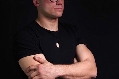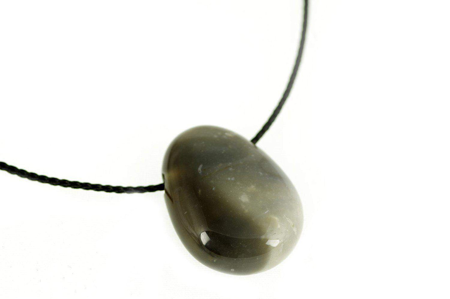 Akmuo: Titnagas, pasižymintis savo tvirtumu ir klasikinėmis spalvomis – paprastai pilka arba juoda – suteikia pakabukui natūralumo ir išraiškingumo.