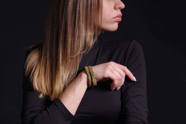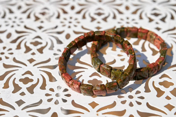 Atraskite modernų ir stilingą papuošalą, kuriame unakito akmenų kvadratinės formos suteikia dizainui geometrinį unikalumą ir eleganciją. Ši apyrankė yra puikus pasirinkimas tiems, kurie vertina emocinį balansą, dvasinį augimą ir nori išraiškingų, bet subtilių aksesuarų su moderniu prisilietimu.
