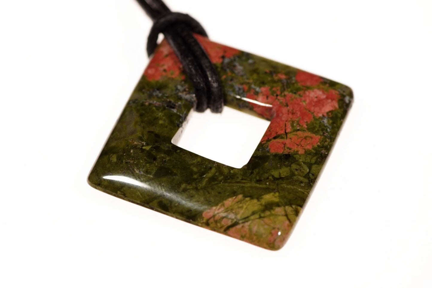 Atraskite modernų ir išskirtinį papuošalą, kuriame svarbiausias elementas – 28 mm skersmens unakito akmuo, suformuotas į stilingą rombo formą. Unakitas, pasižymintis savo sodria žalia spalva, papildyta rožinėmis ar raudonomis įtaigomis, suteikia pakabukui ne tik išskirtinį estetinį patrauklumą, bet ir simbolizuoja pusiausvyrą, augimą bei dvasinę ramybę.