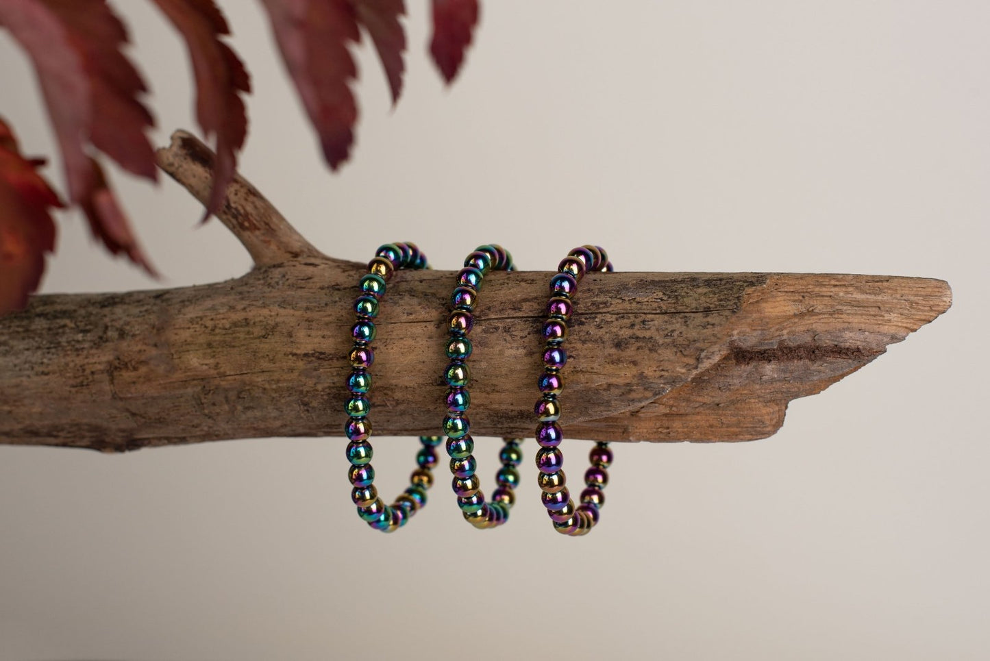 Tai stilingas ir spalvingas papuošalas, pasižymintis vaivorykštinio hematito akmenų blizgesiu ir metaliniu atspalviu. Ši apyrankė, sukurta iš 6 mm skersmens hematito akmenėlių, yra puikus pasirinkimas tiems, kurie vertina energijos stiprinimą, apsaugą ir mėgsta išraiškingus, bet subtilius aksesuarus.