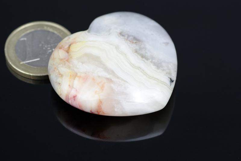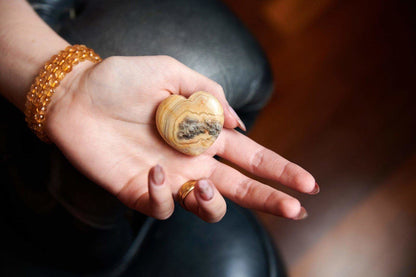 Atraskite unikalų ir menišką akmenį, kurio sudėtingi nėrinių agato raštai atskleidžia natūralų grožį bei dvasinę reikšmę. Šis širdies formos delninukas ne tik išsiskiria savo autentiška išvaizda, bet ir simbolizuoja apsaugą, subtilumą bei pusiausvyrą, įkvepiant emocinį ir dvasinį išsiskleidimą.
