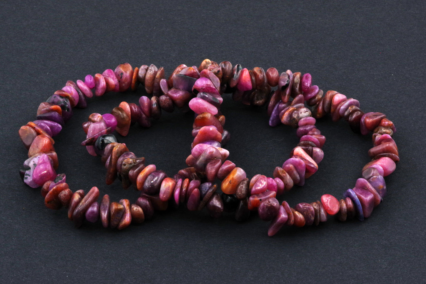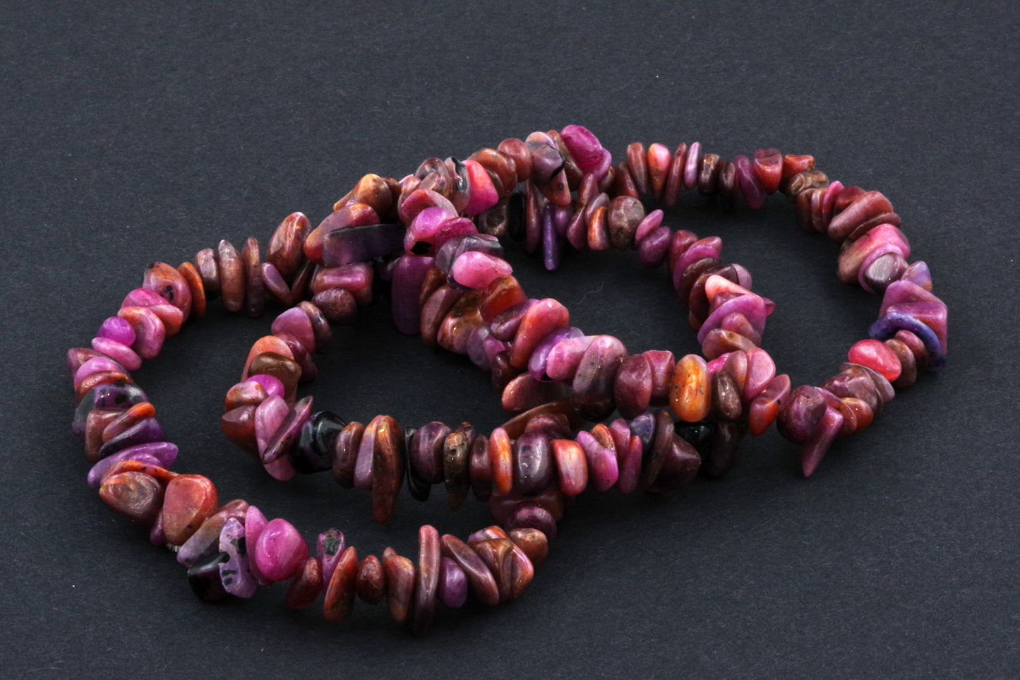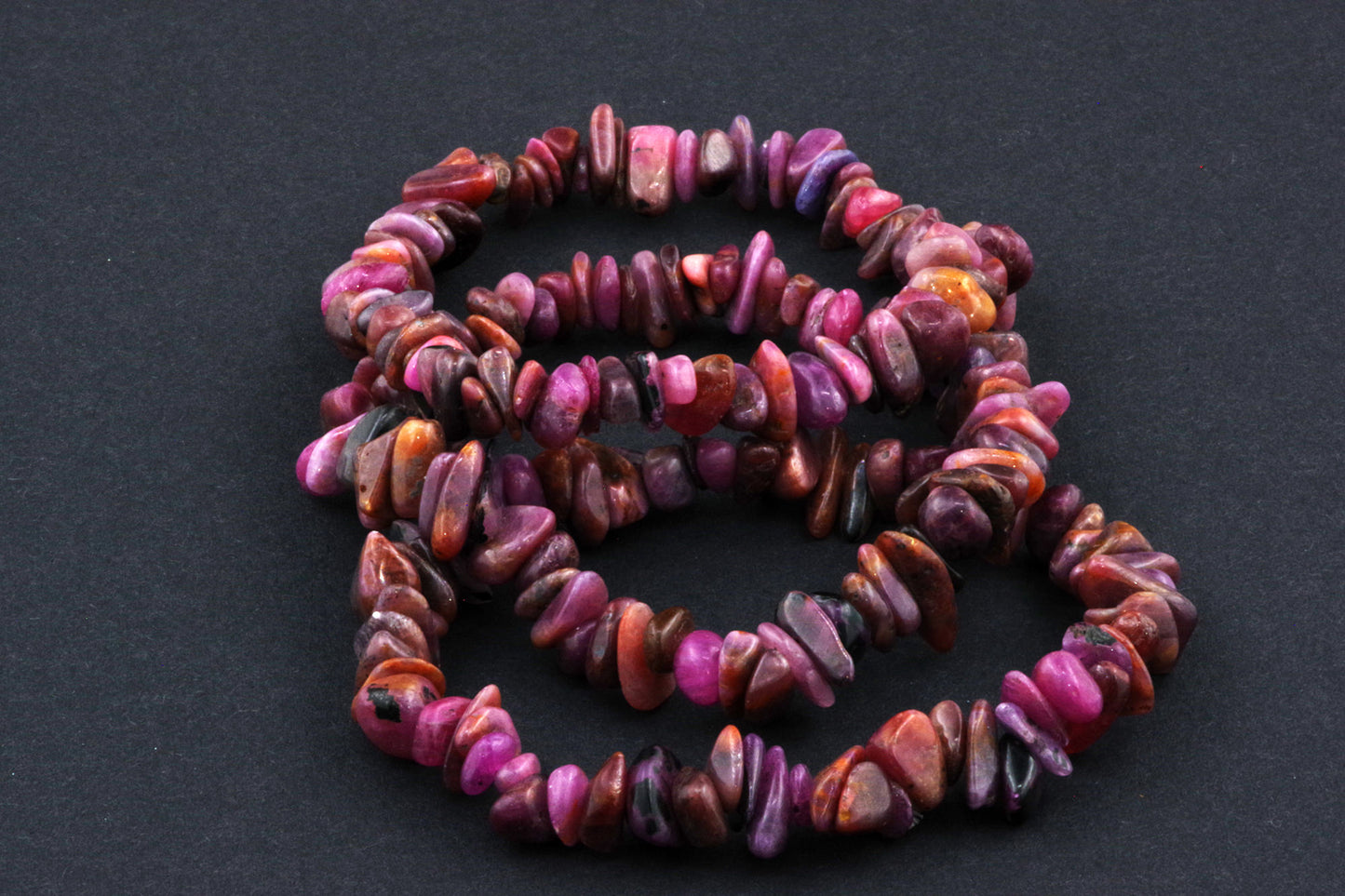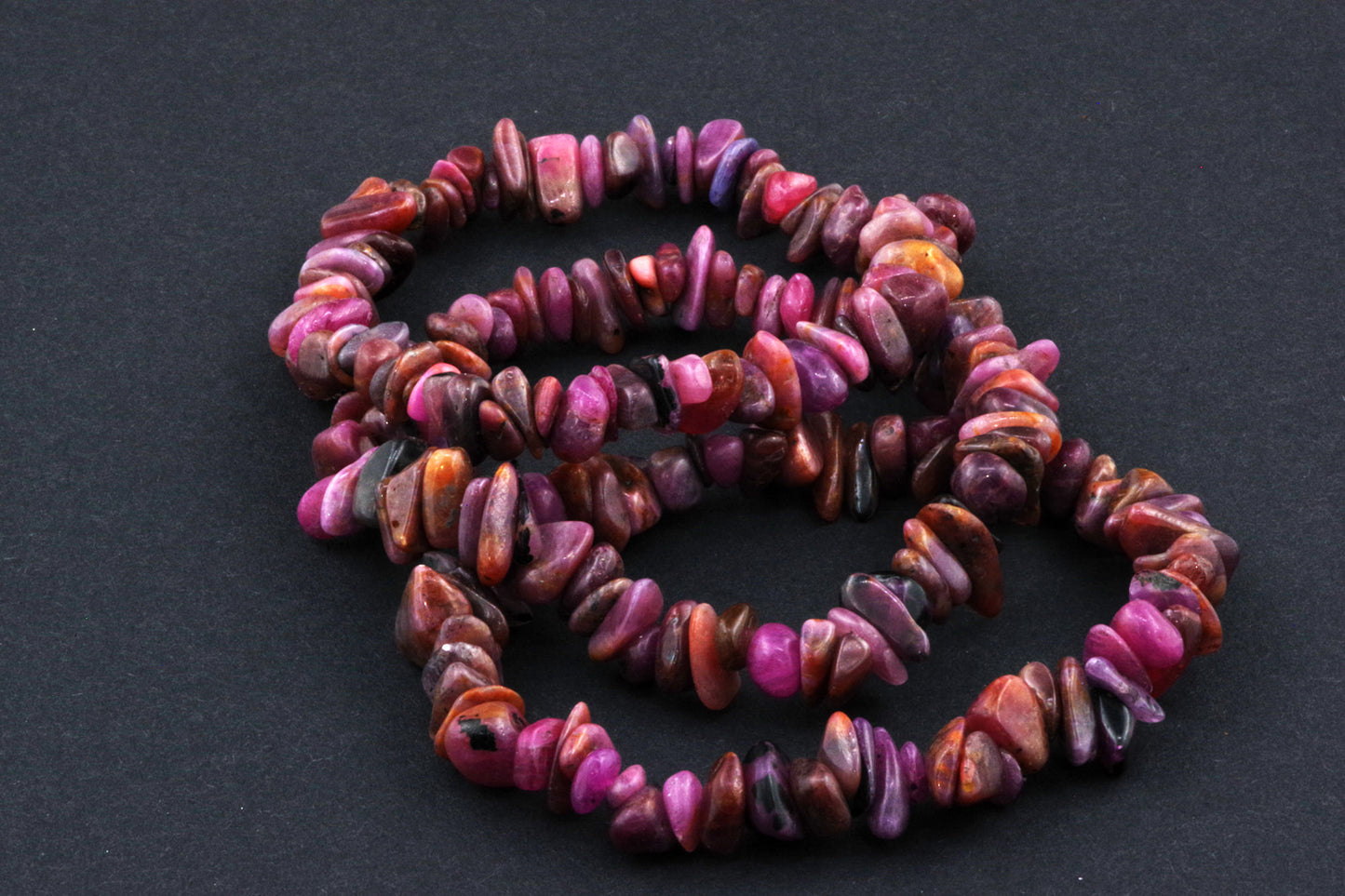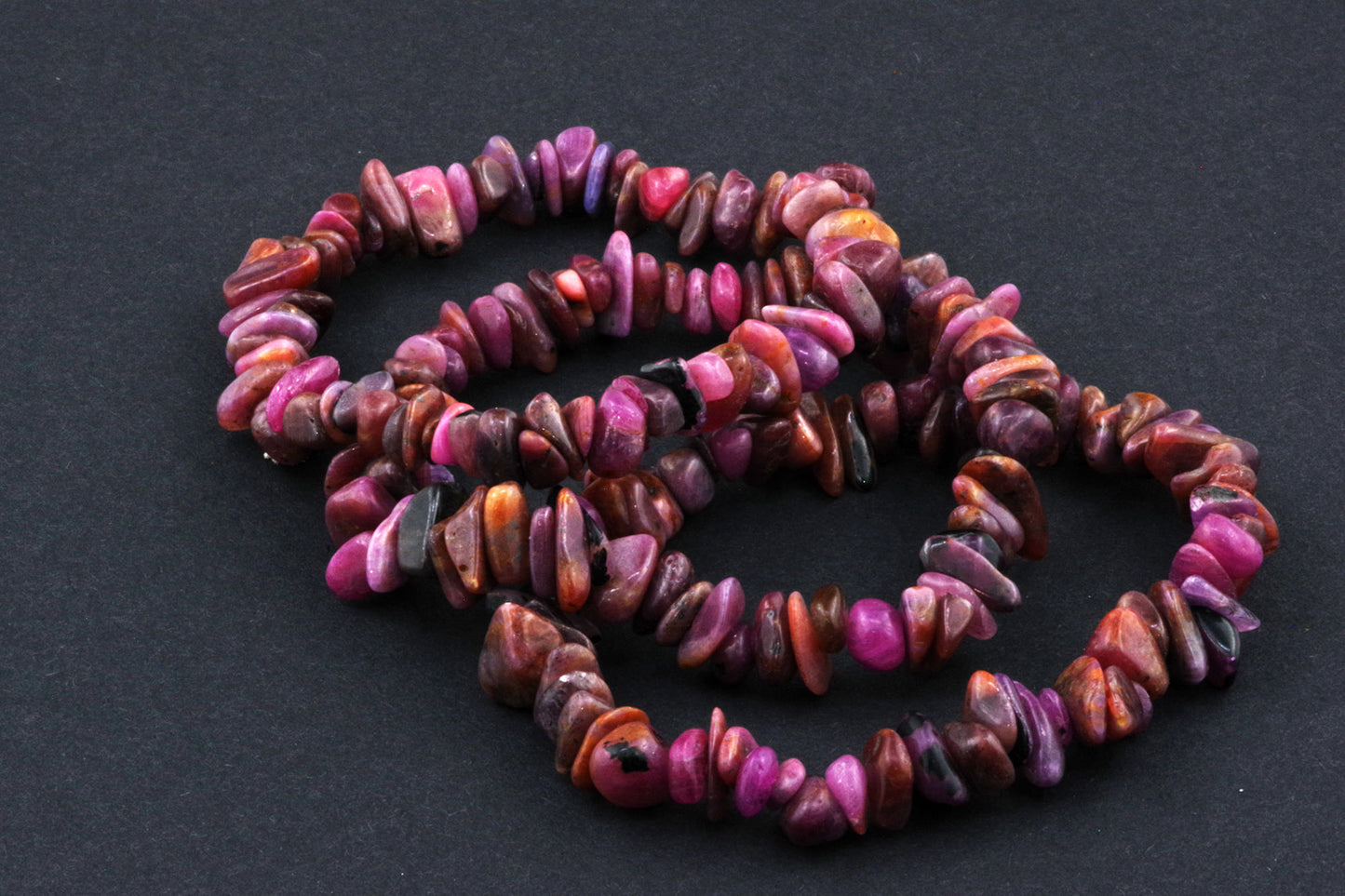 Stil Jucăuș "Čipsiukai": Brățara, formată din mici chipsuri de rubin, creează un aspect vibrant și colorat, care atrage atenția.