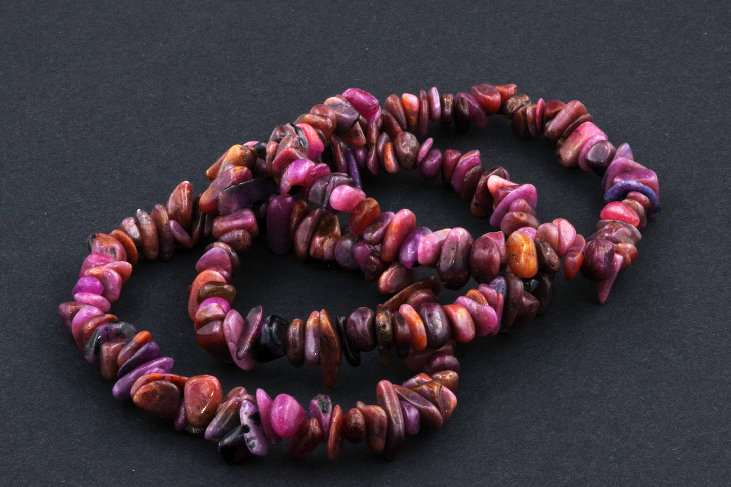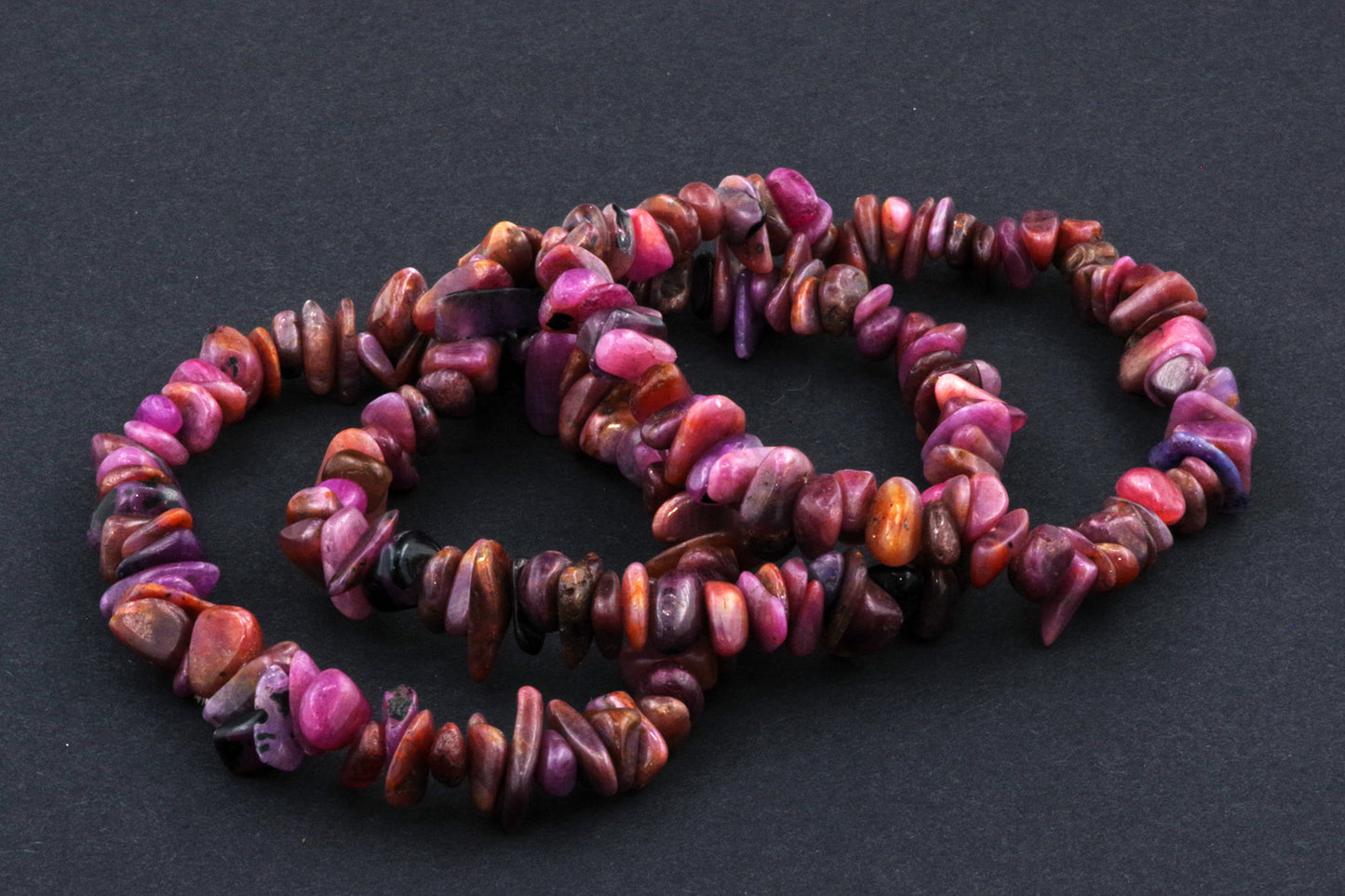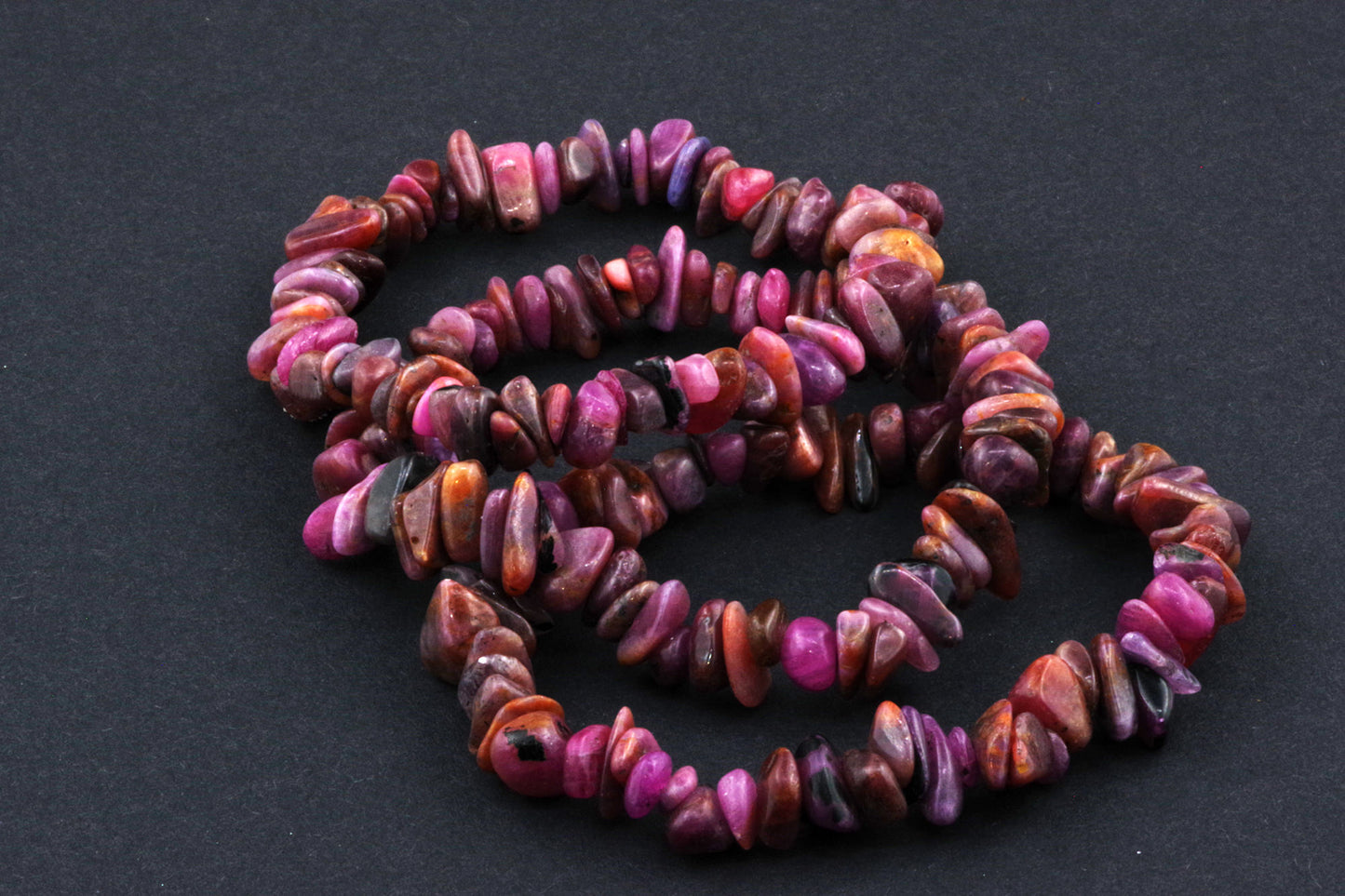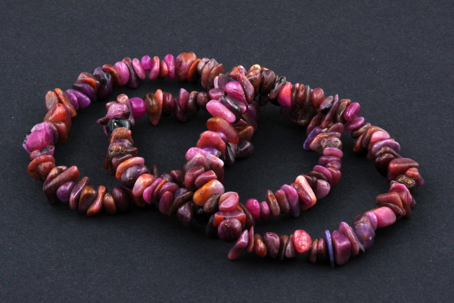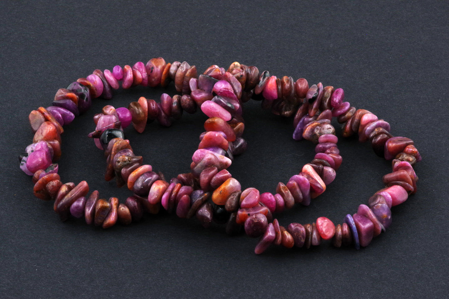 Stil Jucăuș "Čipsiukai": Brățara, formată din mici chipsuri de rubin, creează un aspect vibrant și colorat, care atrage atenția.