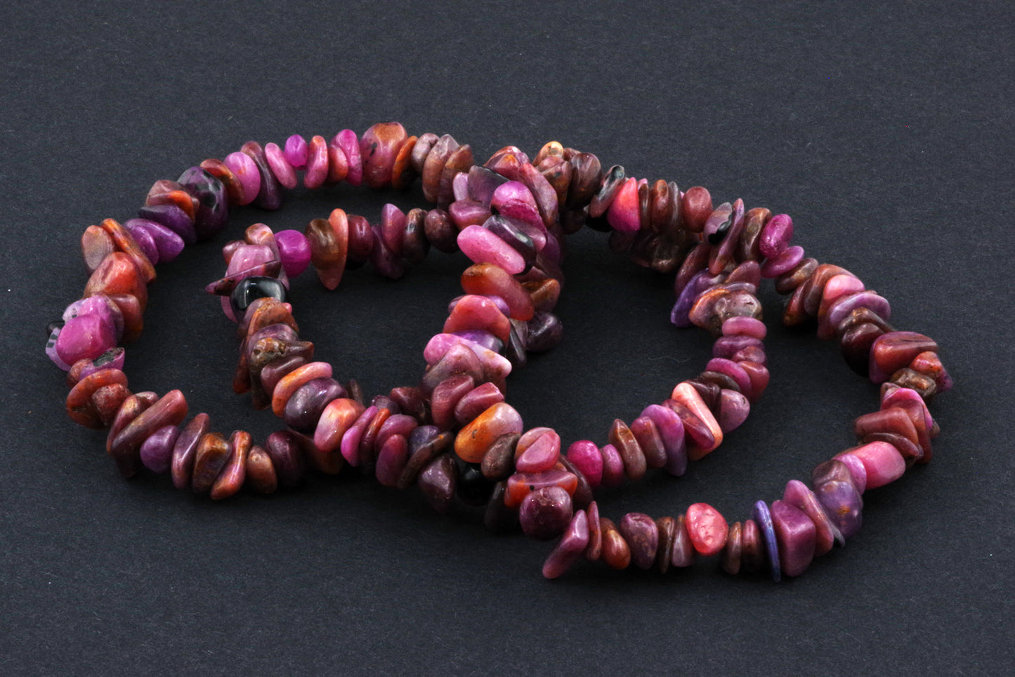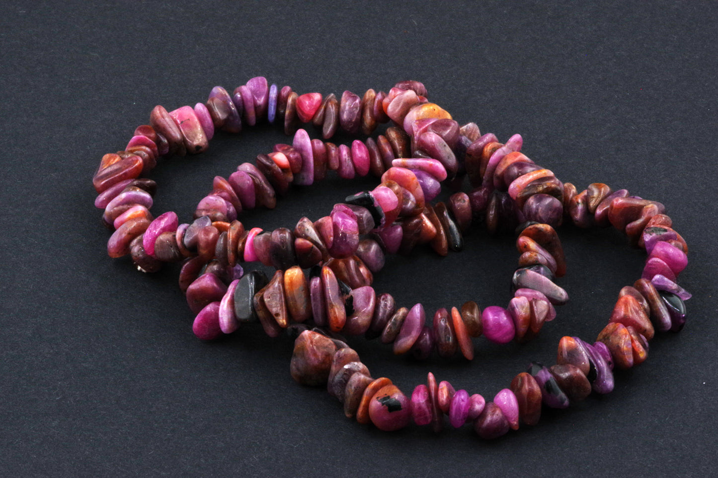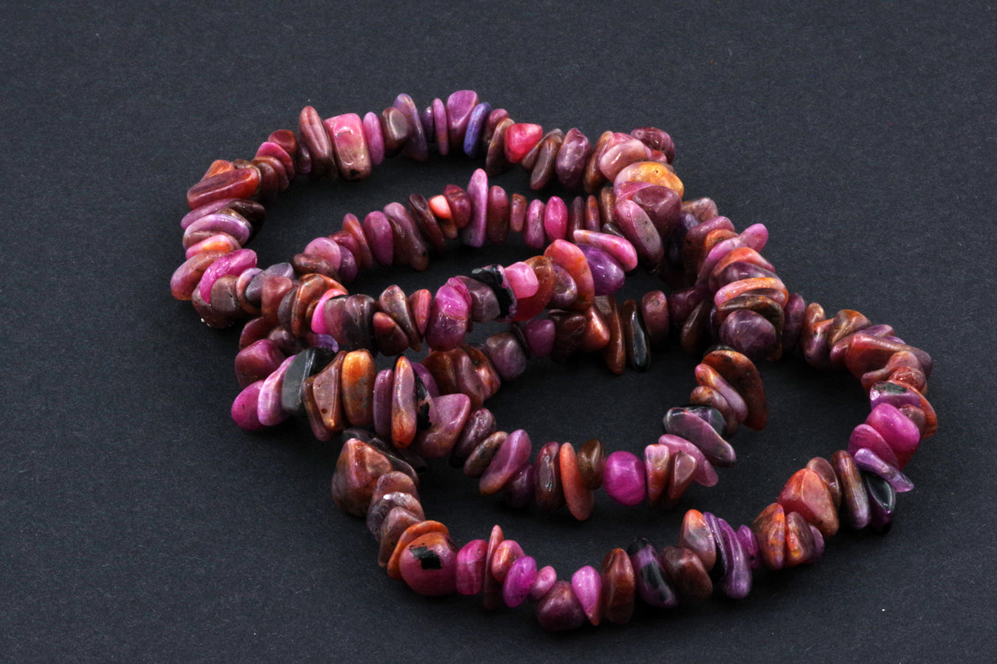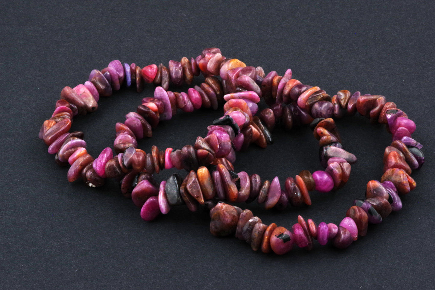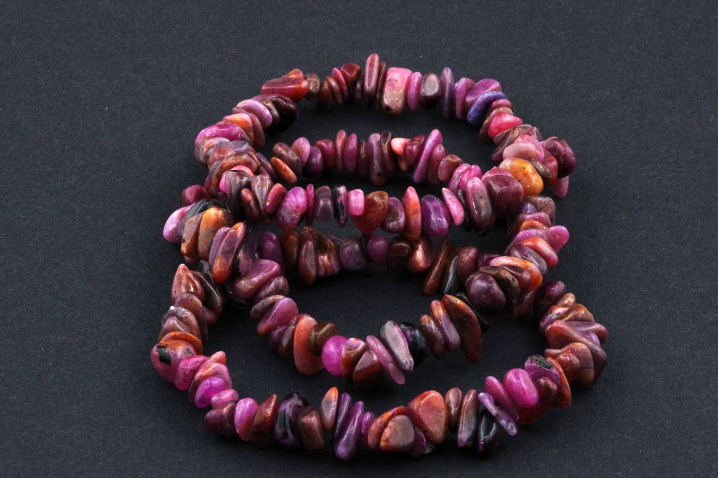 Stil Jucăuș "Čipsiukai": Brățara, formată din mici chipsuri de rubin, creează un aspect vibrant și colorat, care atrage atenția.