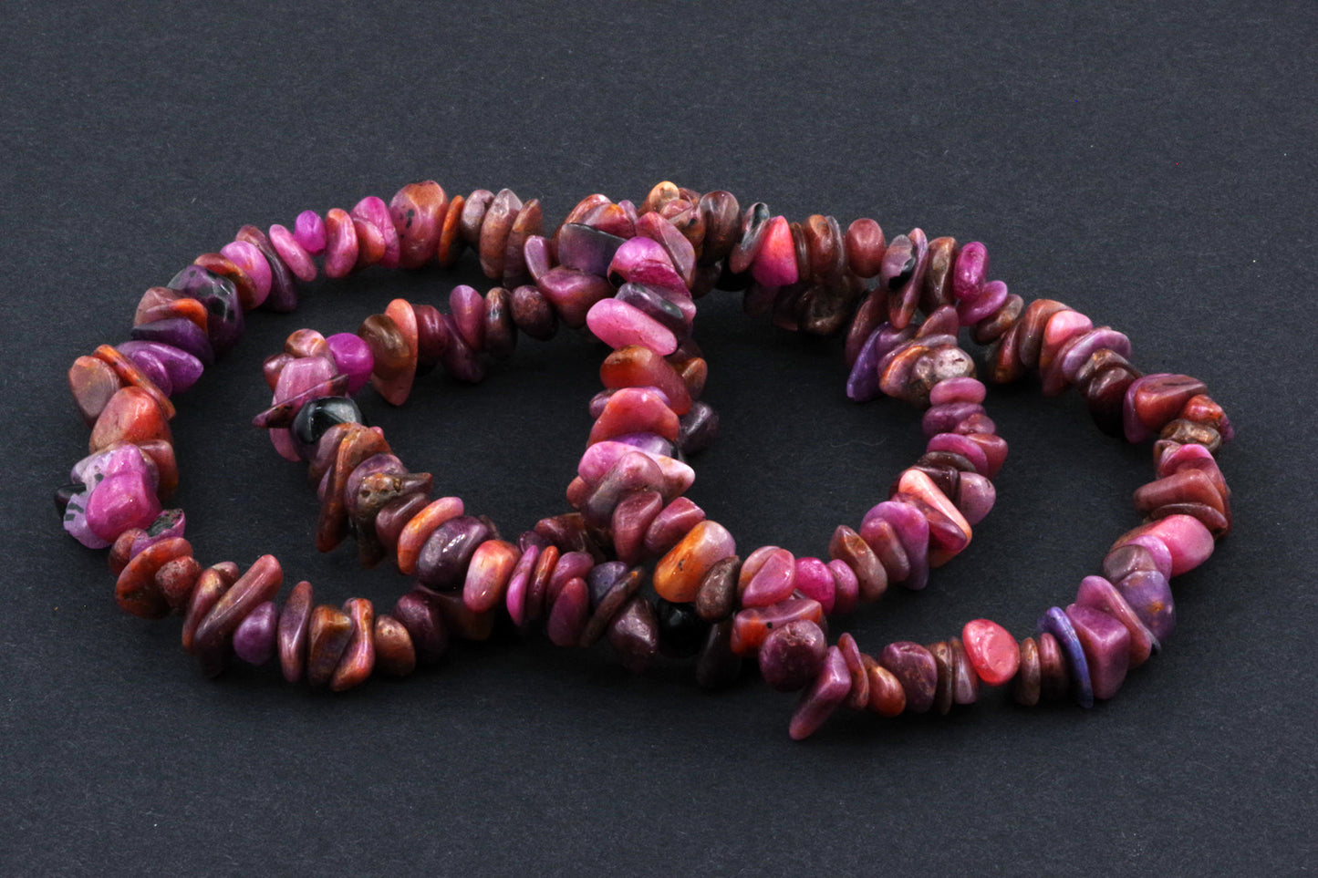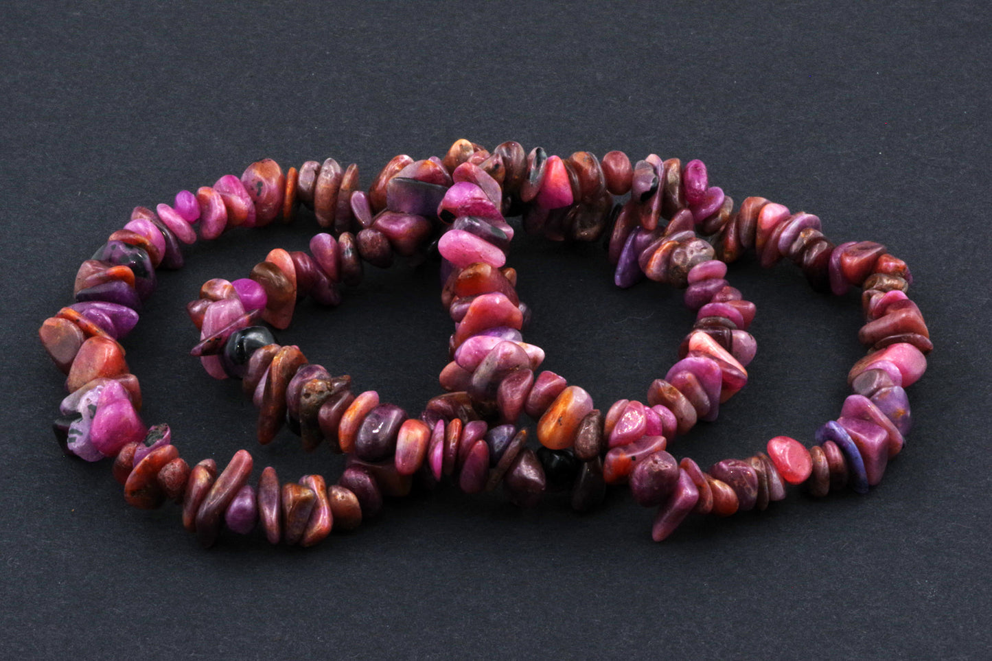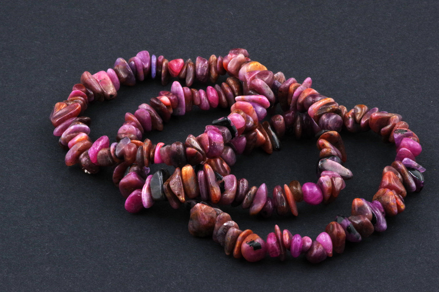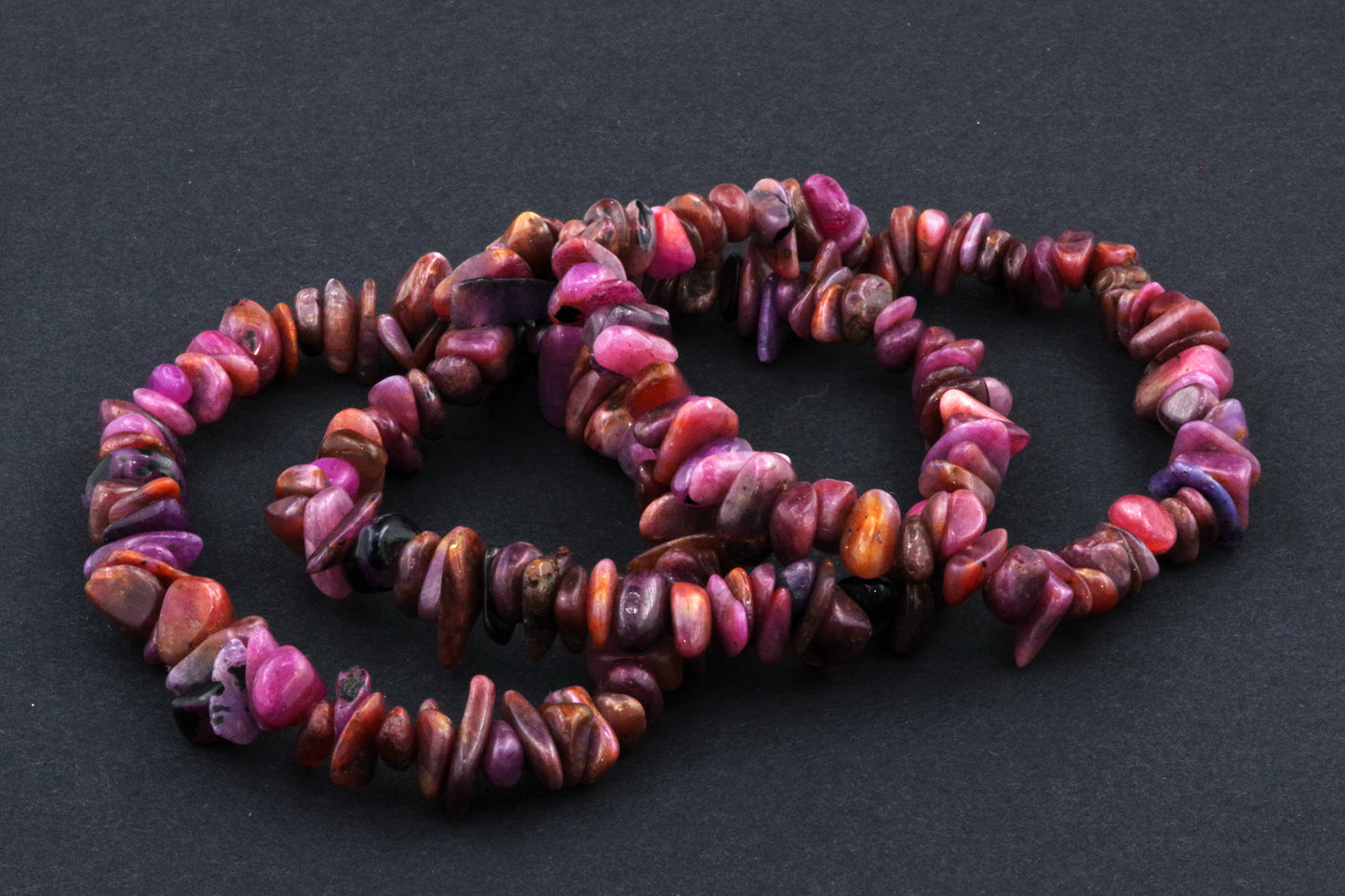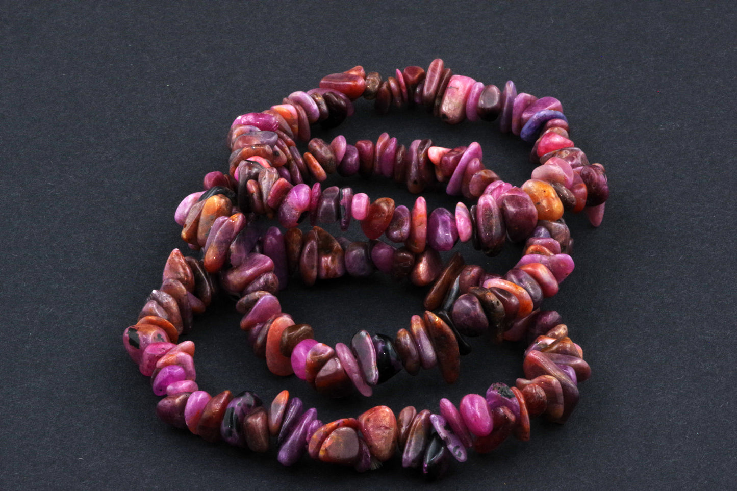 Stil Jucăuș "Čipsiukai": Brățara, formată din mici chipsuri de rubin, creează un aspect vibrant și colorat, care atrage atenția.