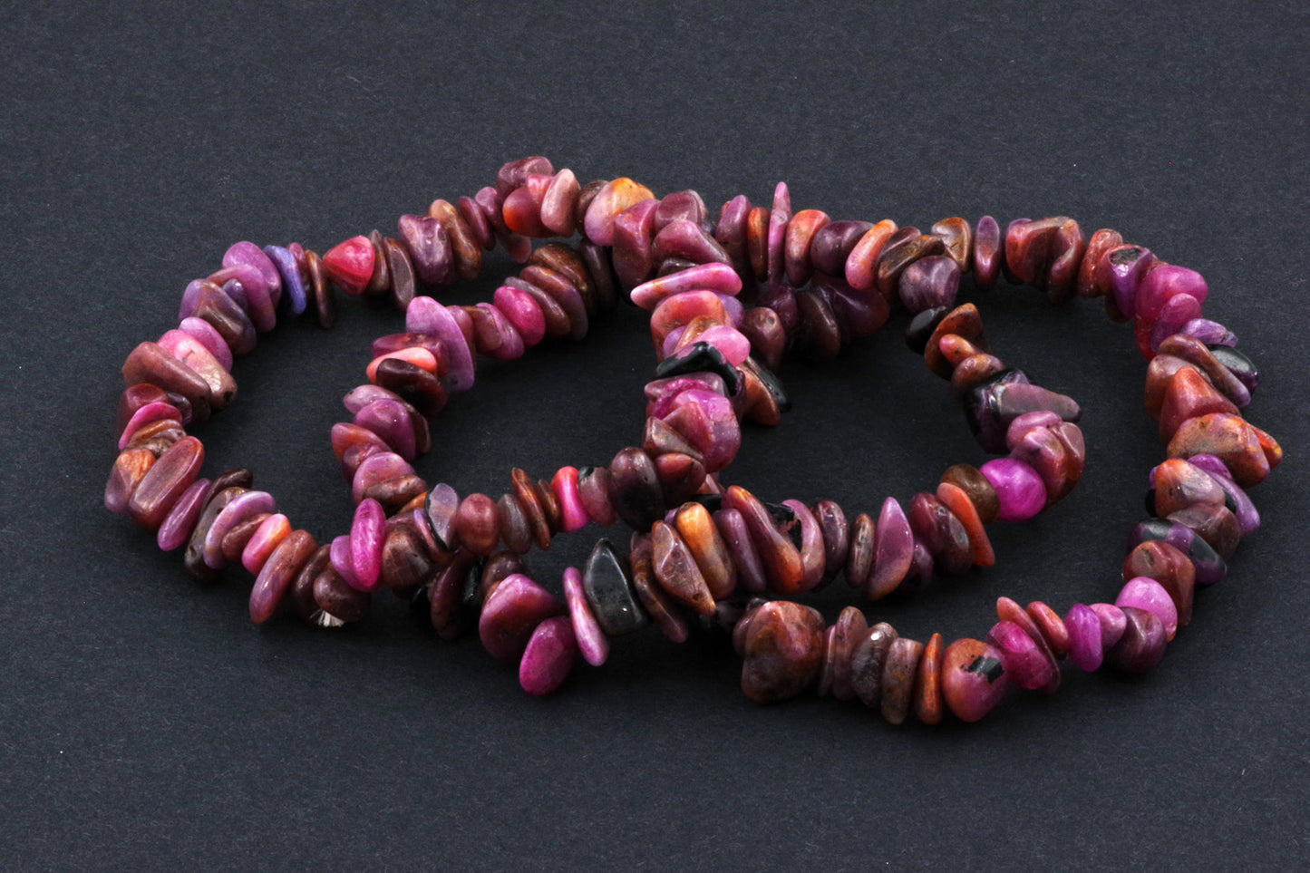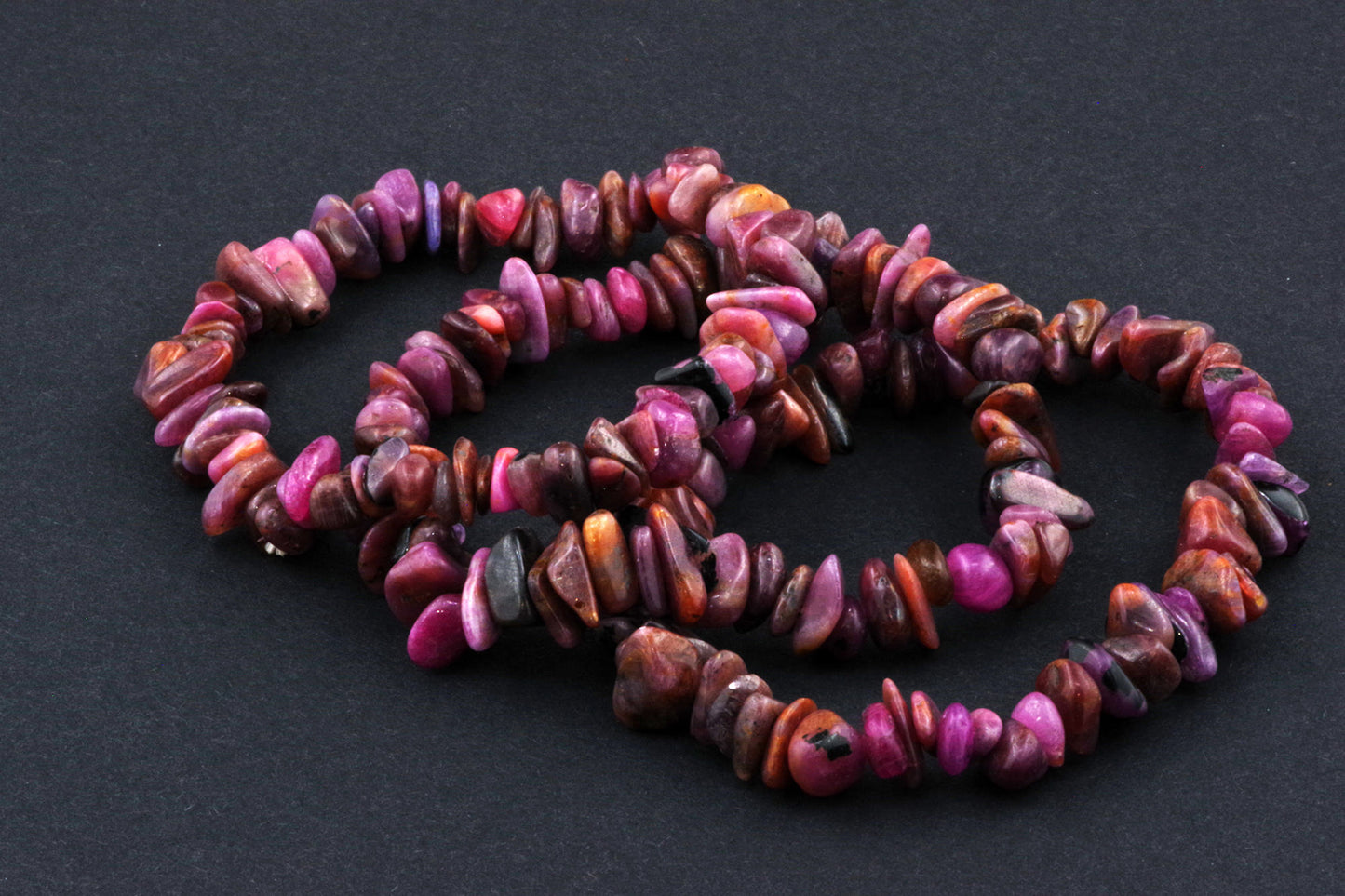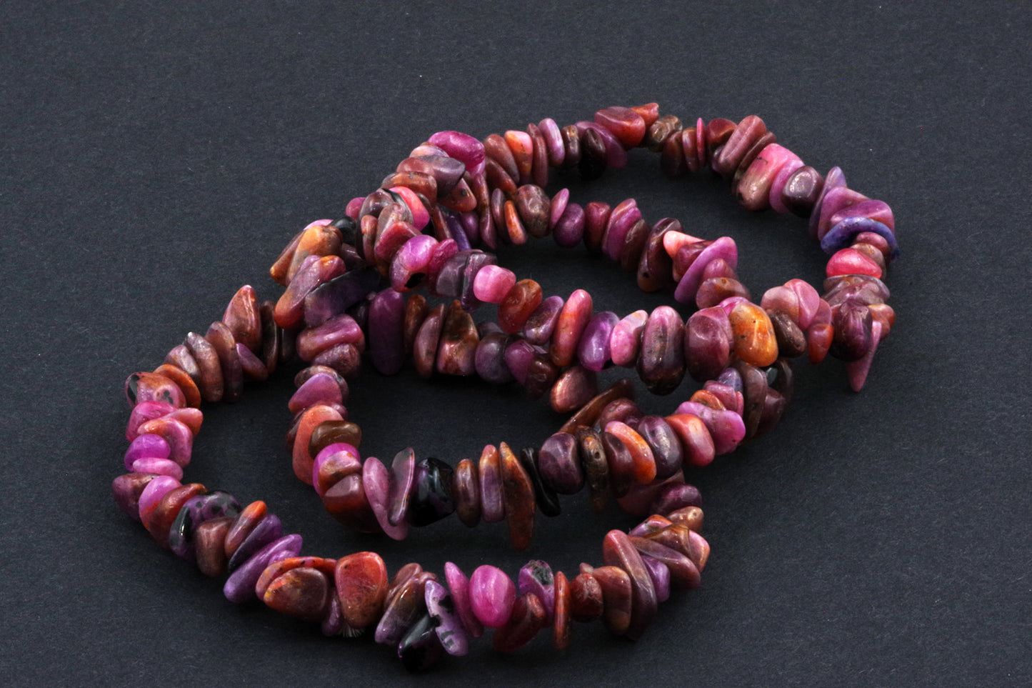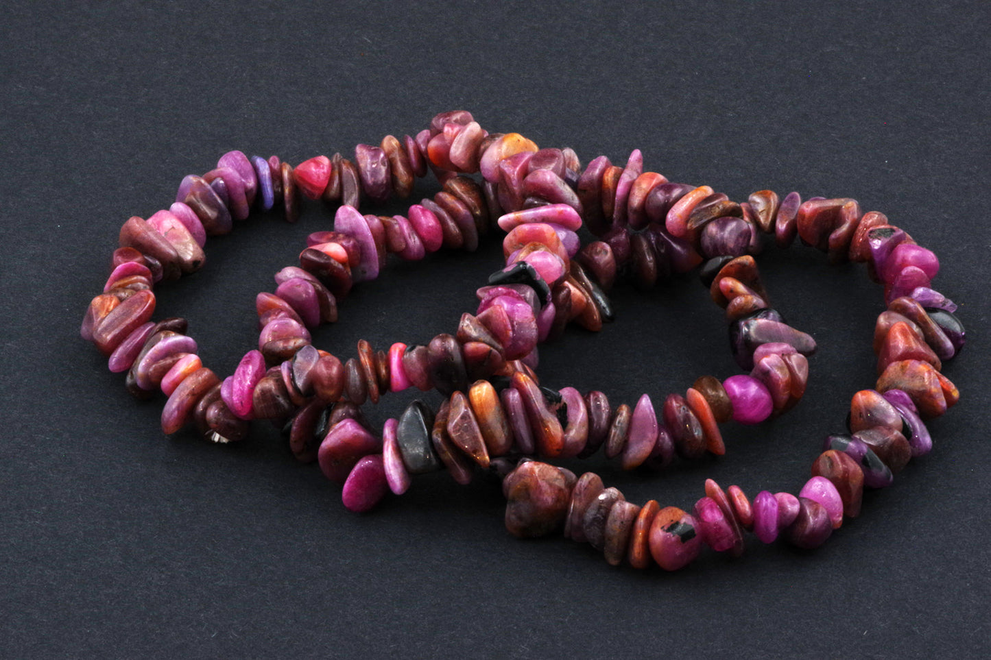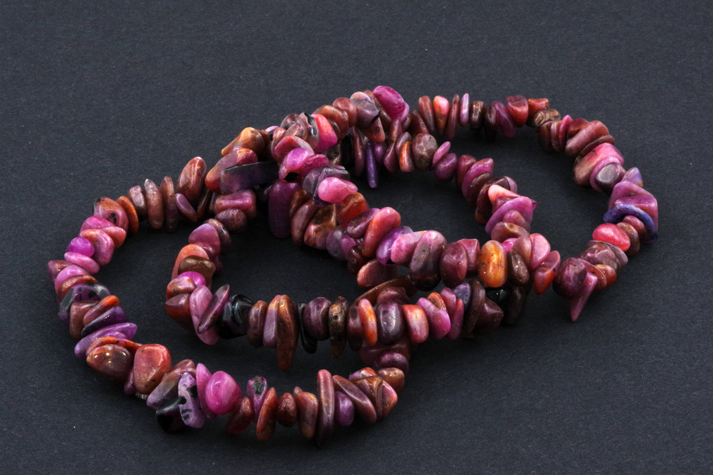 Stil Jucăuș "Čipsiukai": Brățara, formată din mici chipsuri de rubin, creează un aspect vibrant și colorat, care atrage atenția.