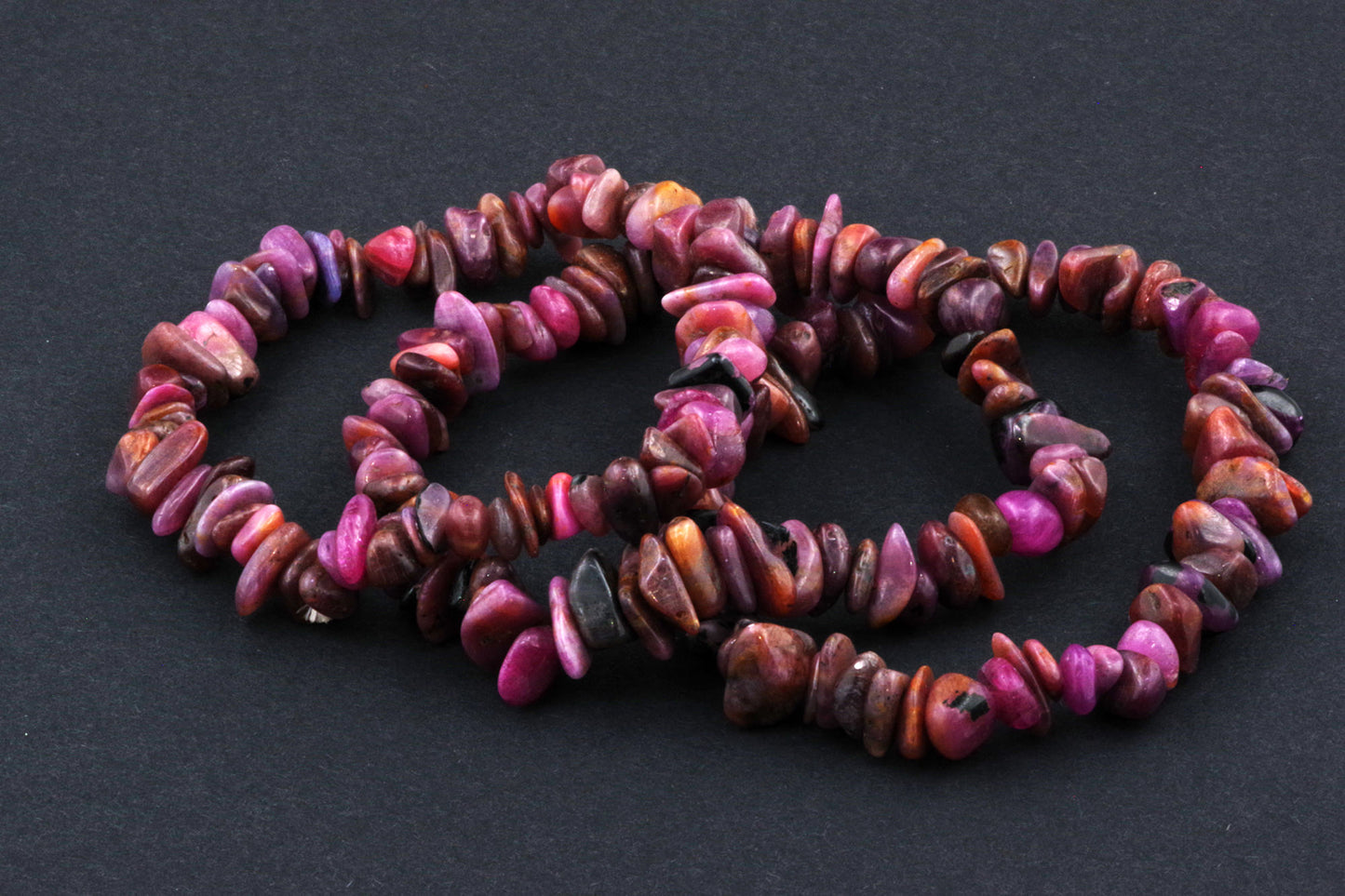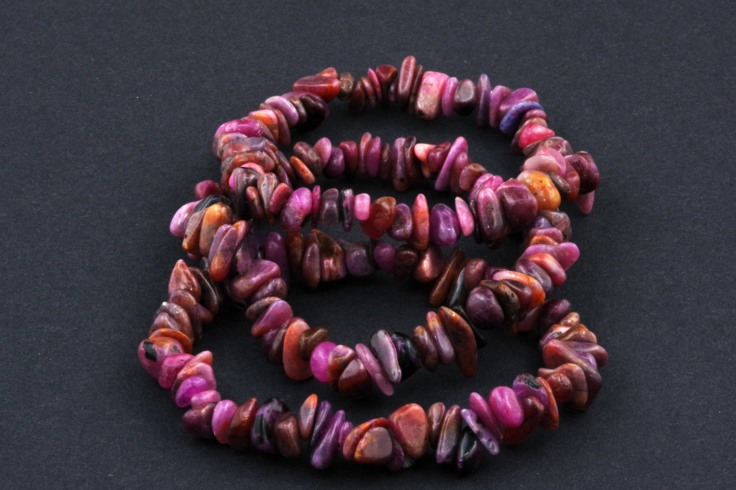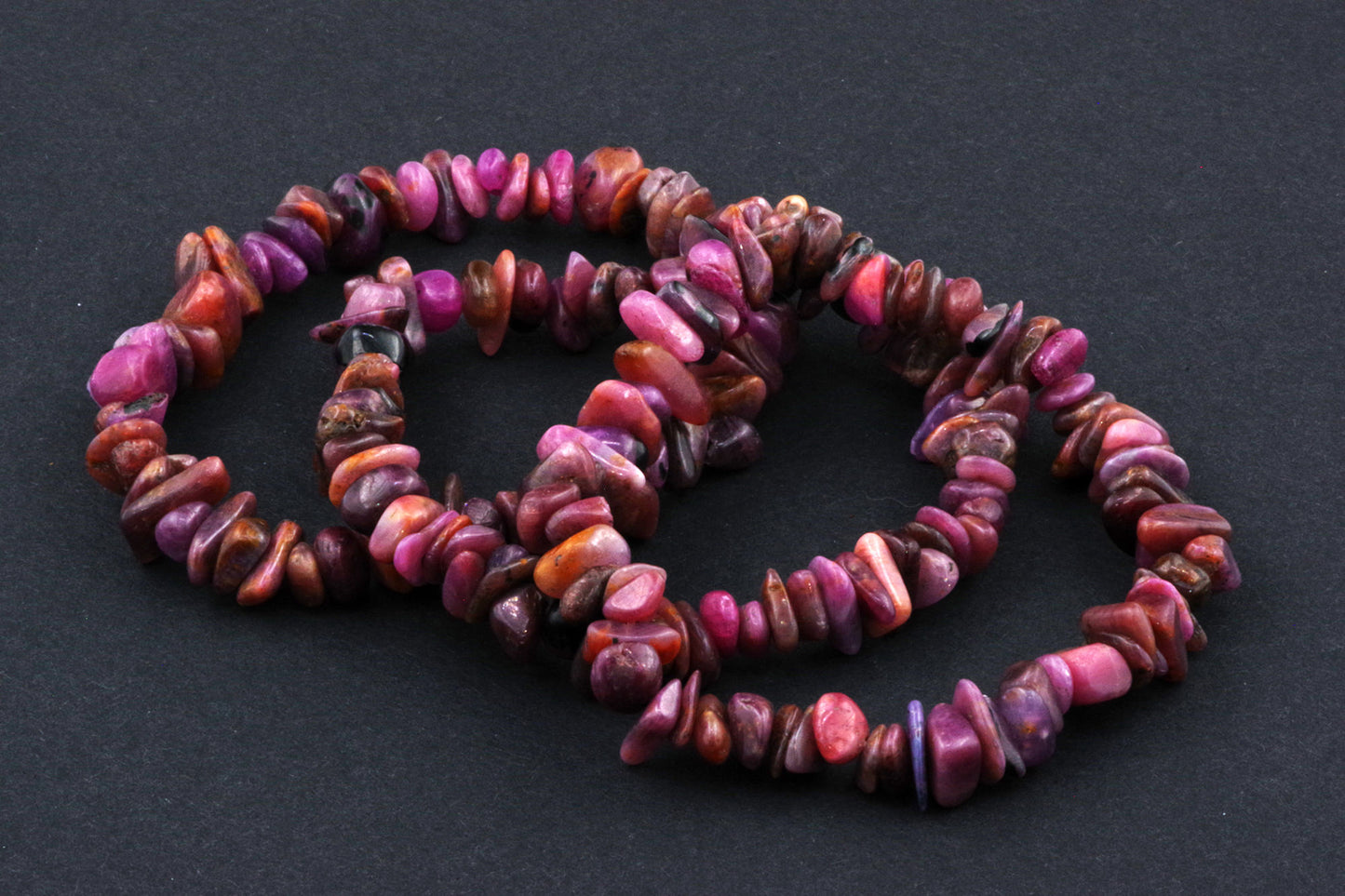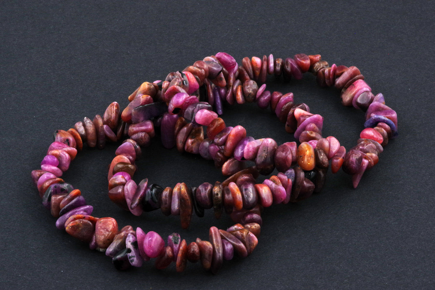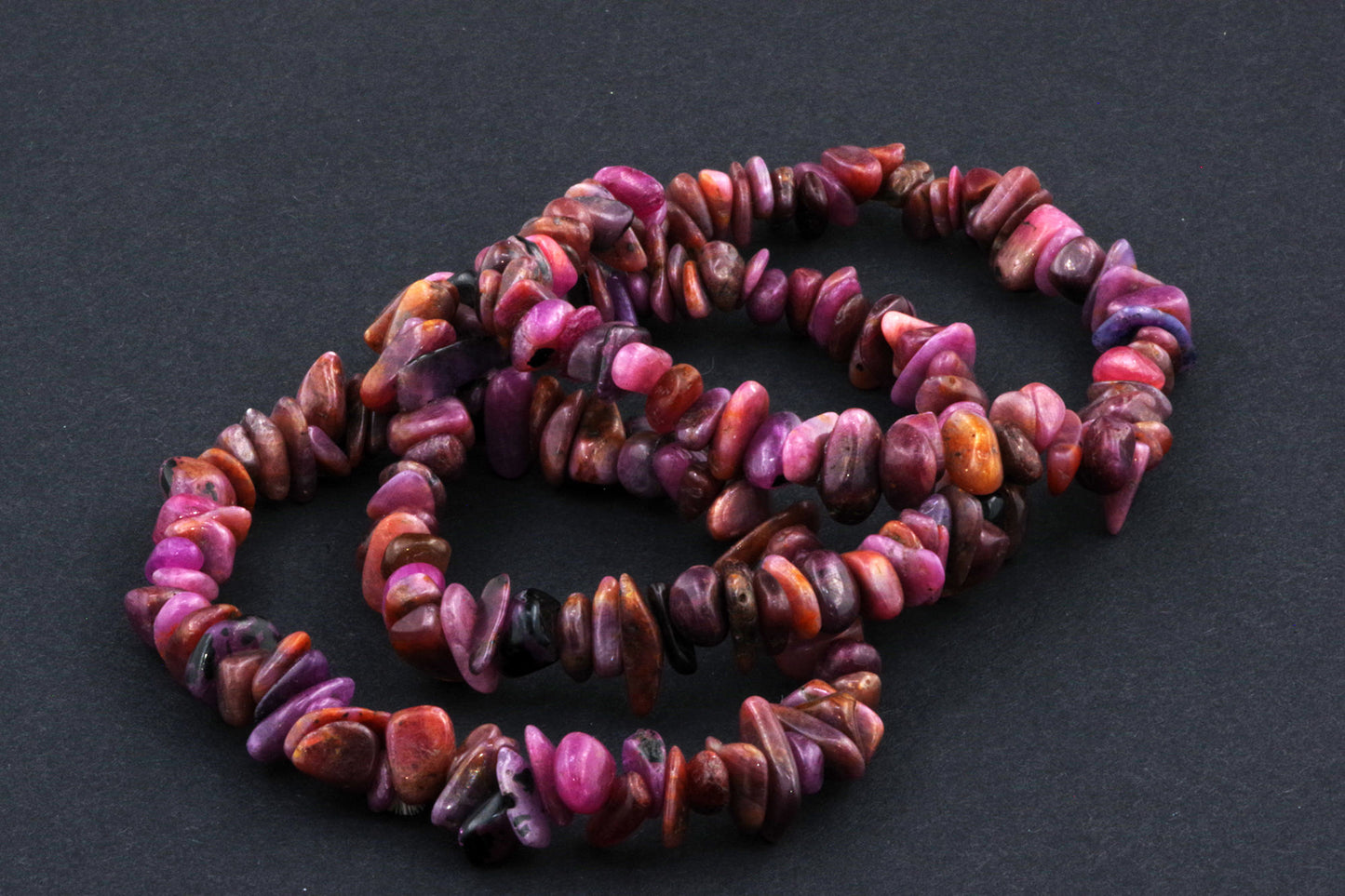 Stil Jucăuș "Čipsiukai": Brățara, formată din mici chipsuri de rubin, creează un aspect vibrant și colorat, care atrage atenția.
