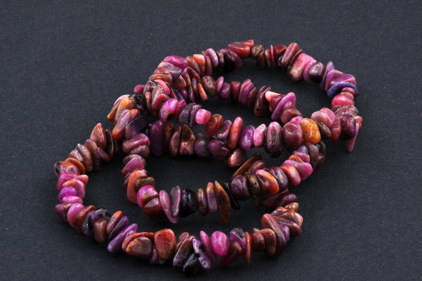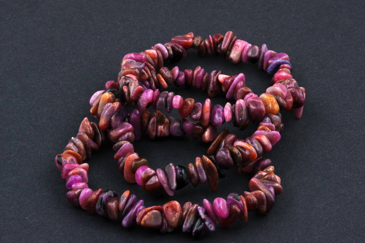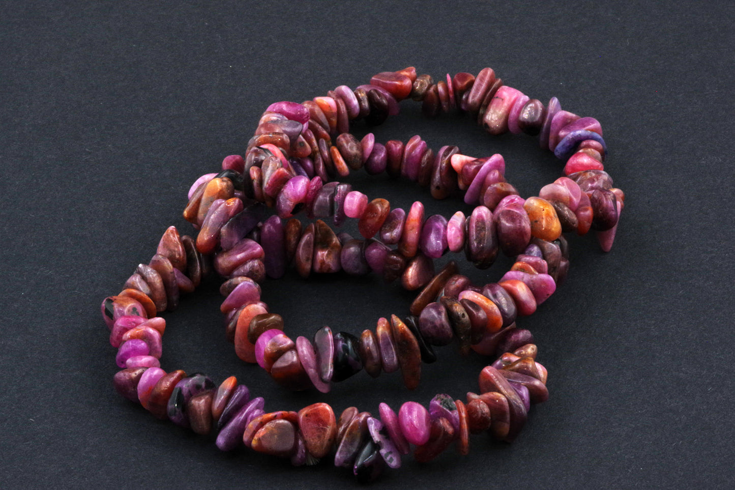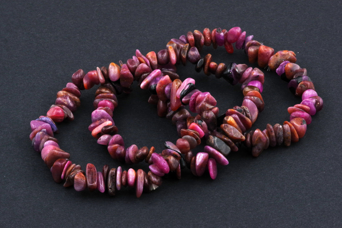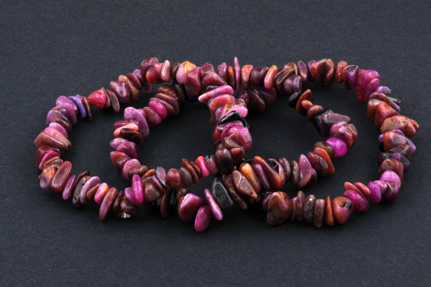 Stil Jucăuș "Čipsiukai": Brățara, formată din mici chipsuri de rubin, creează un aspect vibrant și colorat, care atrage atenția.