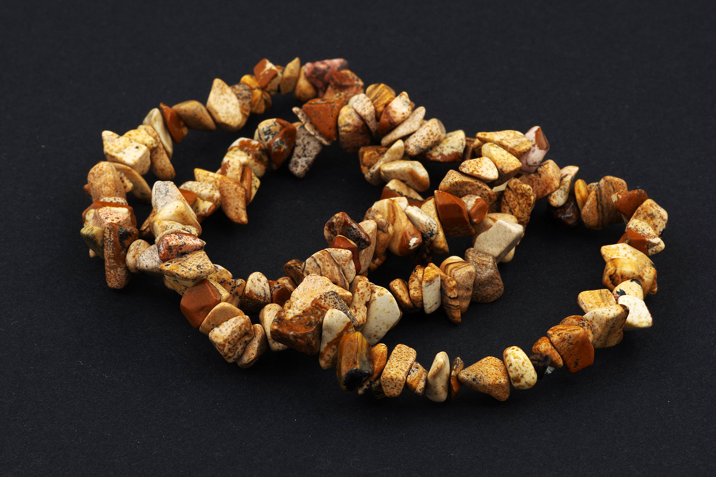 Откройте для себя уникальное и художественное украшение, чьей исключительностью являются разноцветные и интересно расположенные каменные чипсы. Этот браслет, созданный из мелких, натуральной формы узорчатого яшмы чипсов, идеально подходит тем, кто ценит выразительный дизайн, а также аутентичную красоту и символику природы.