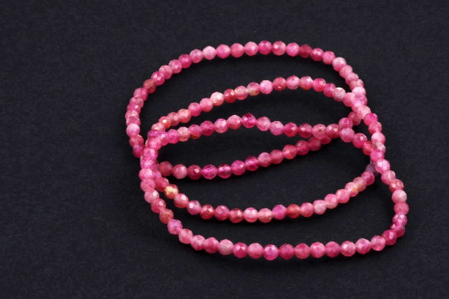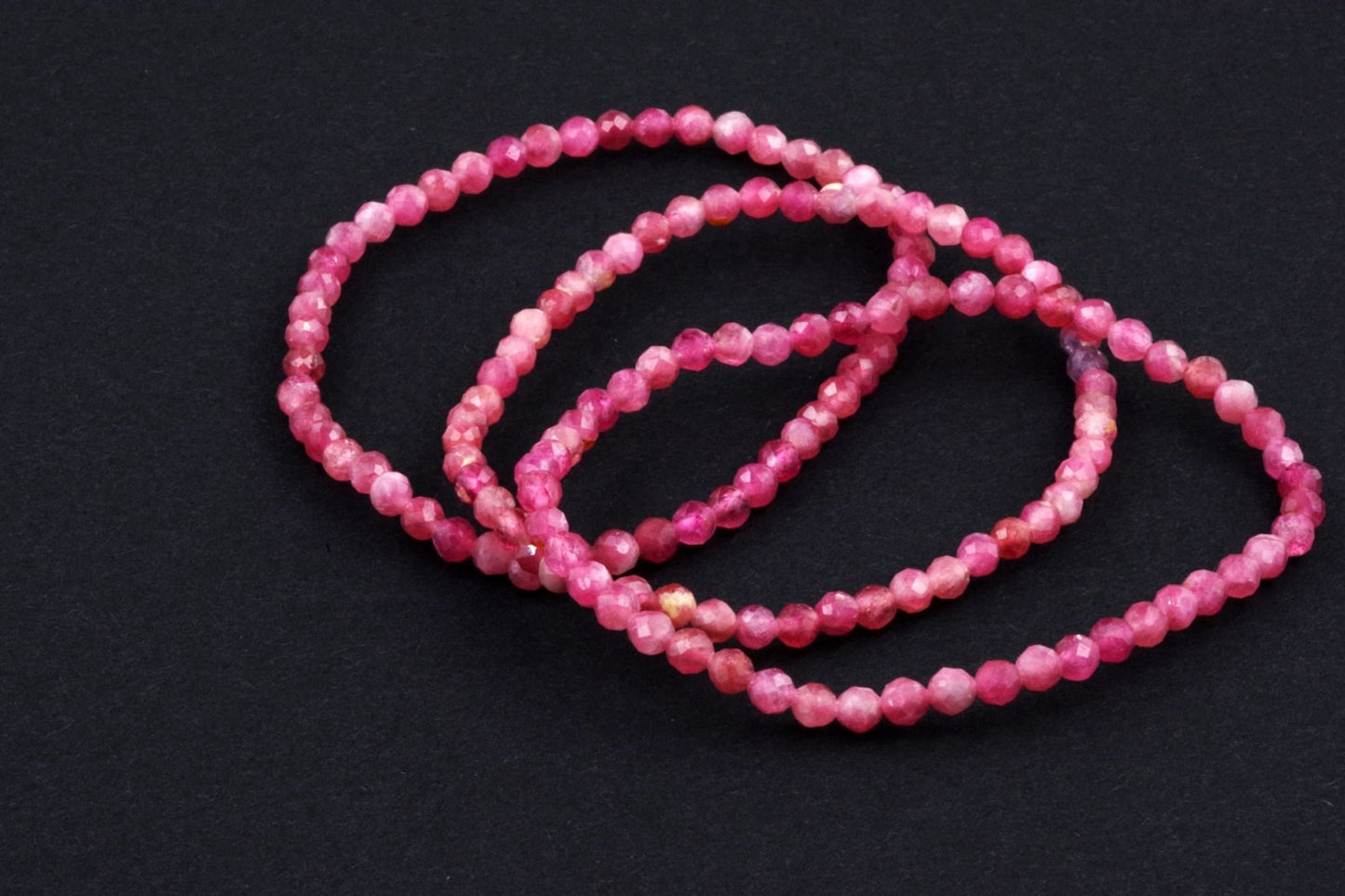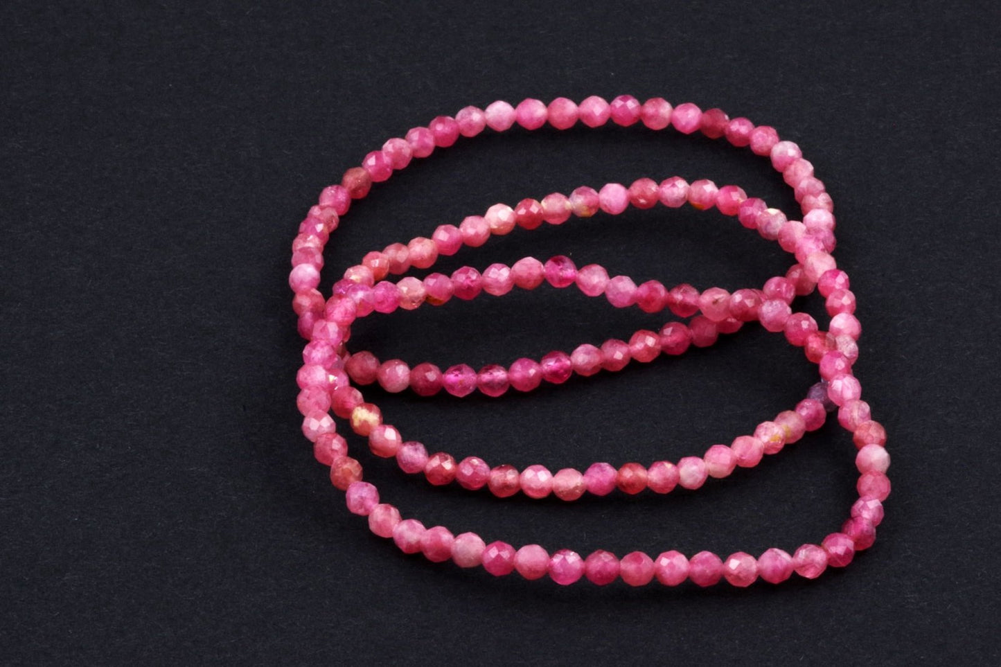 Откройте для себя роскошное и красочное украшение, которое привносит исключительность в ваш стиль. Наш браслет "3-4mm Facetuota" из рубеллита изготовлен из мелких граненых камешков, интенсивный розовый цвет и натуральная текстура которых создают впечатляющий визуальный эффект и символизируют страсть, жизненную силу и энергию.