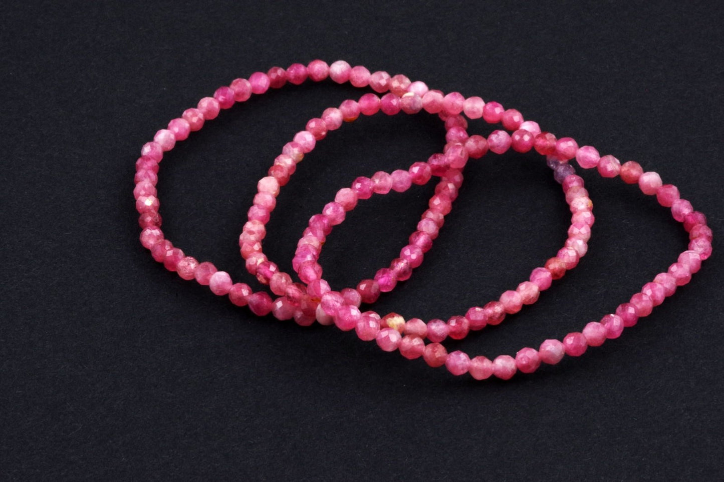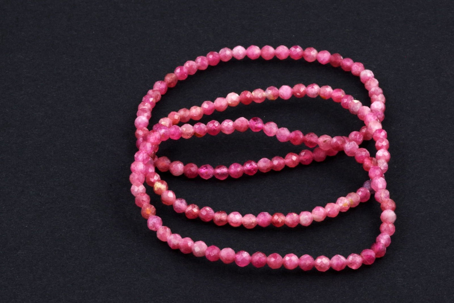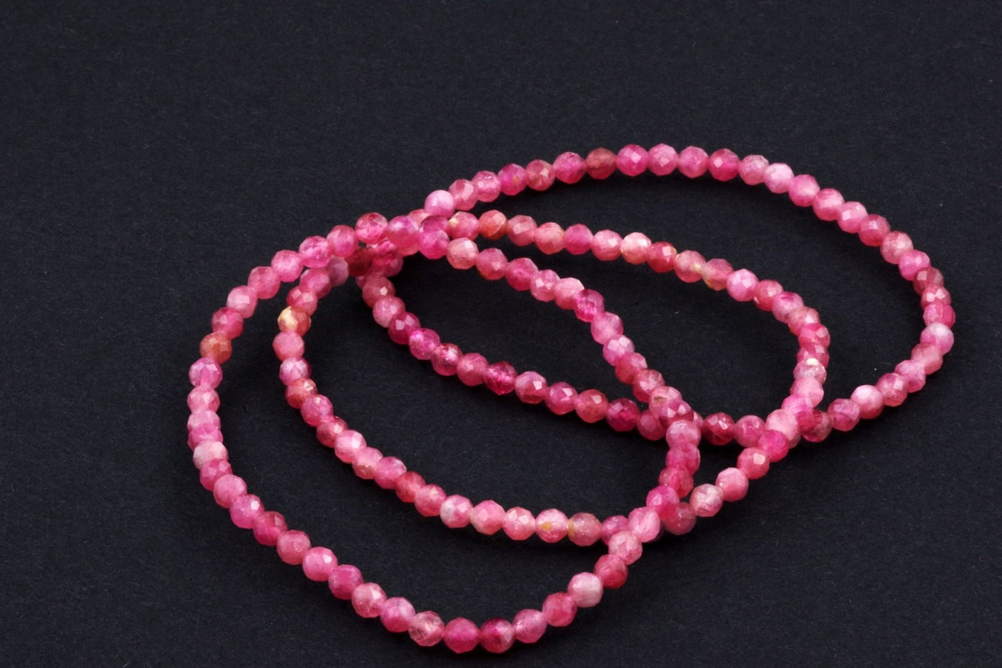 Откройте для себя роскошное и красочное украшение, которое привносит исключительность в ваш стиль. Наш браслет "3-4mm Facetuota" из рубеллита изготовлен из мелких граненых камешков, интенсивный розовый цвет и натуральная текстура которых создают впечатляющий визуальный эффект и символизируют страсть, жизненную силу и энергию.