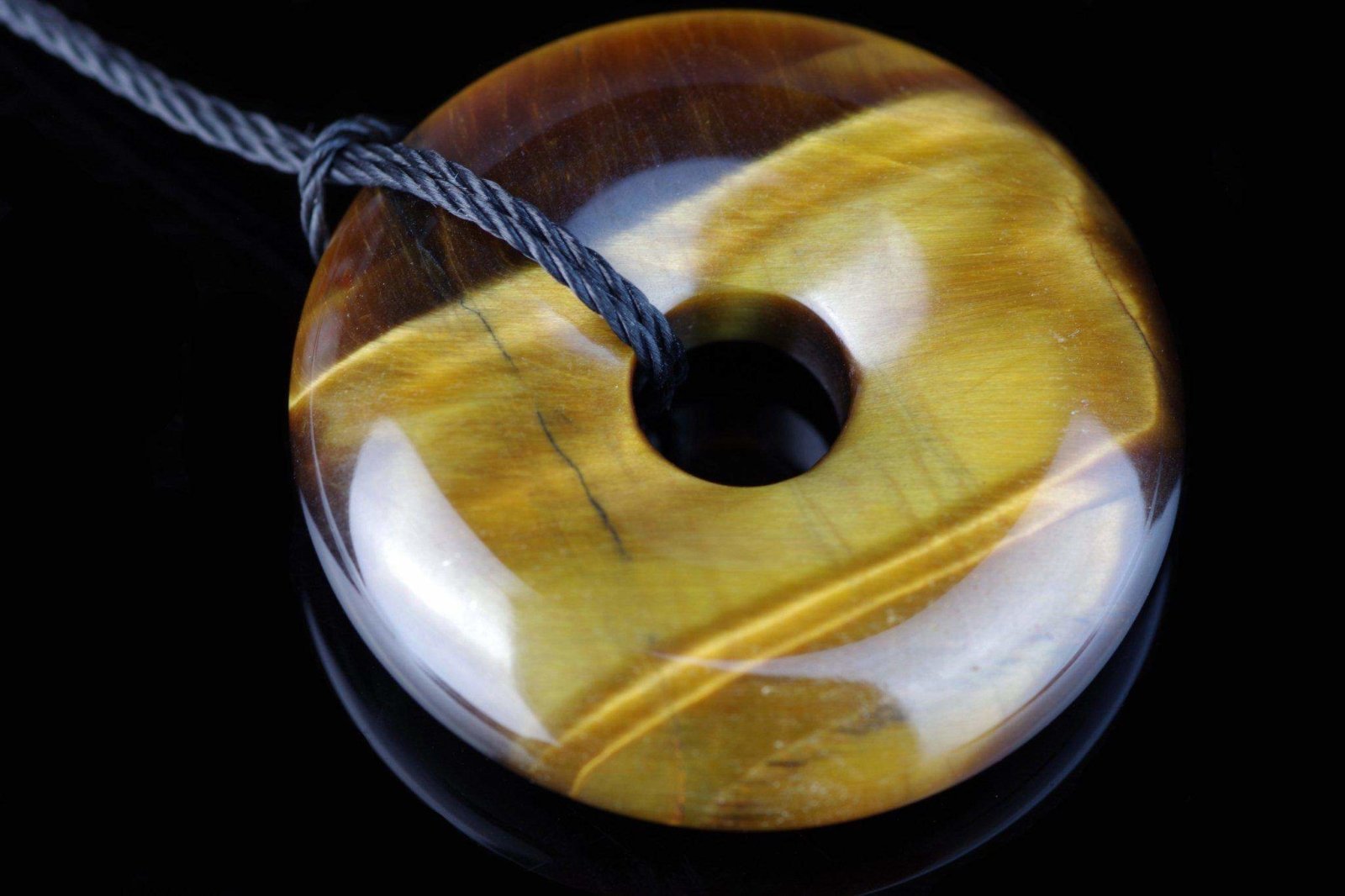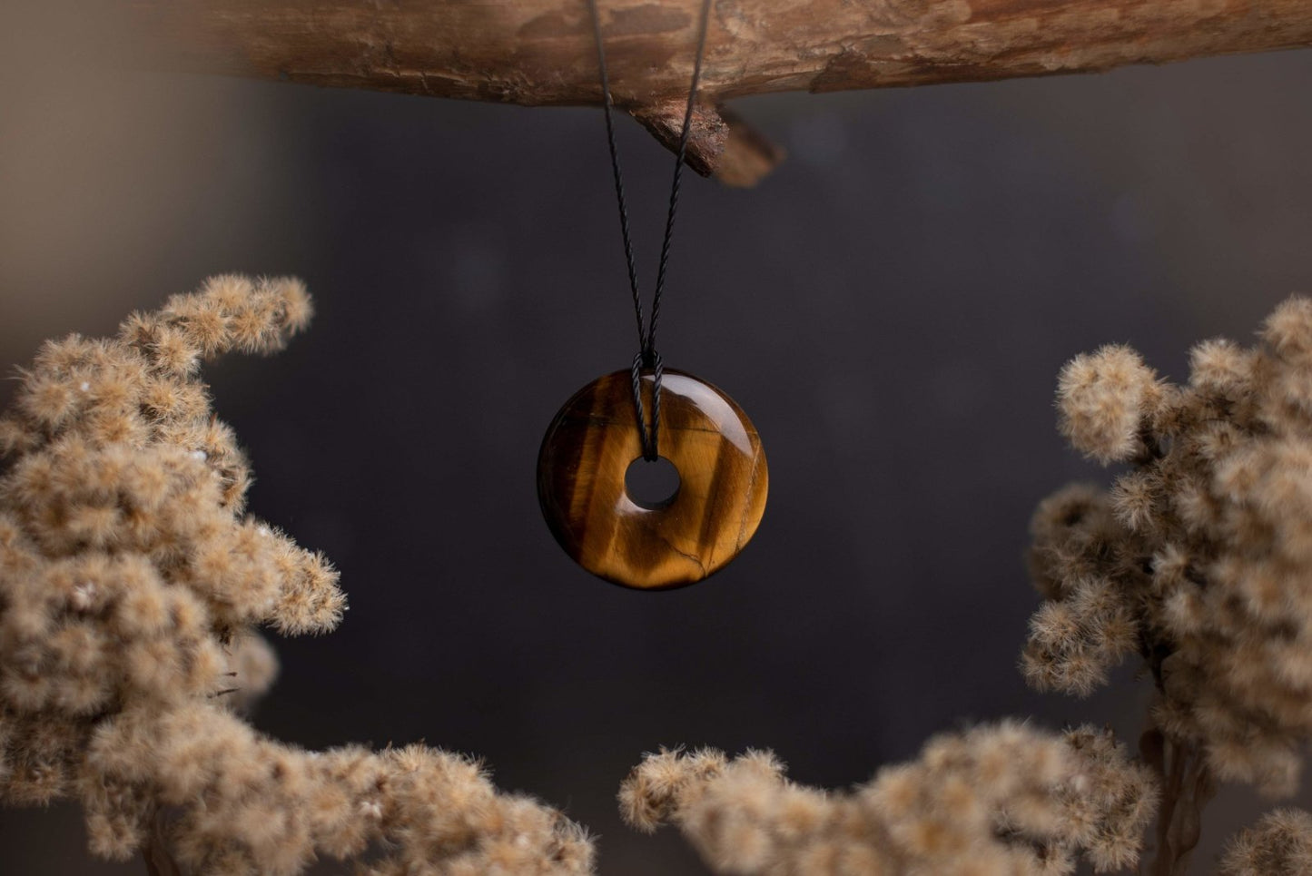 Откройте для себя элегантное и энергетически мощное украшение, в котором главным акцентом является камень тигрового глаза диаметром 30 мм, сформированный в виде диска. Эта подвеска отличается характерным жёлто-коричневым узором и блеском, символизируя решимость, защиту и удачу.