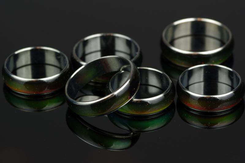 Monokristallina "Humörringar" är intressanta smycken tillverkade med termokromatiska pigment som reagerar på förändringar i hudens temperatur. När kroppstemperaturen ändras, ändrar ringen färg och avslöjar inte bara dina humörförändringar utan ger också accessoaren ett dynamiskt, livfullt utseende.