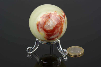Upptäck en unik inredningsdetalj – en onyxsfär med 50 mm diameter som inte bara är visuellt imponerande utan också energimässigt kraftfull. Onyx, känd för sin glänsande yta och rika färgpalett, ger sfären ett lyxigt och elegant utseende som framhäver stenens naturliga skönhet.