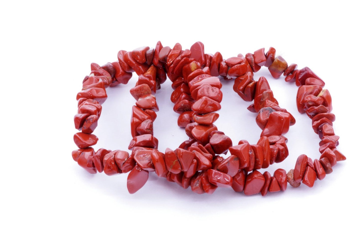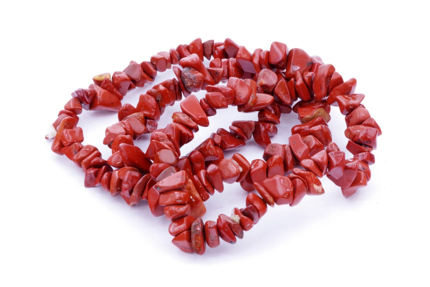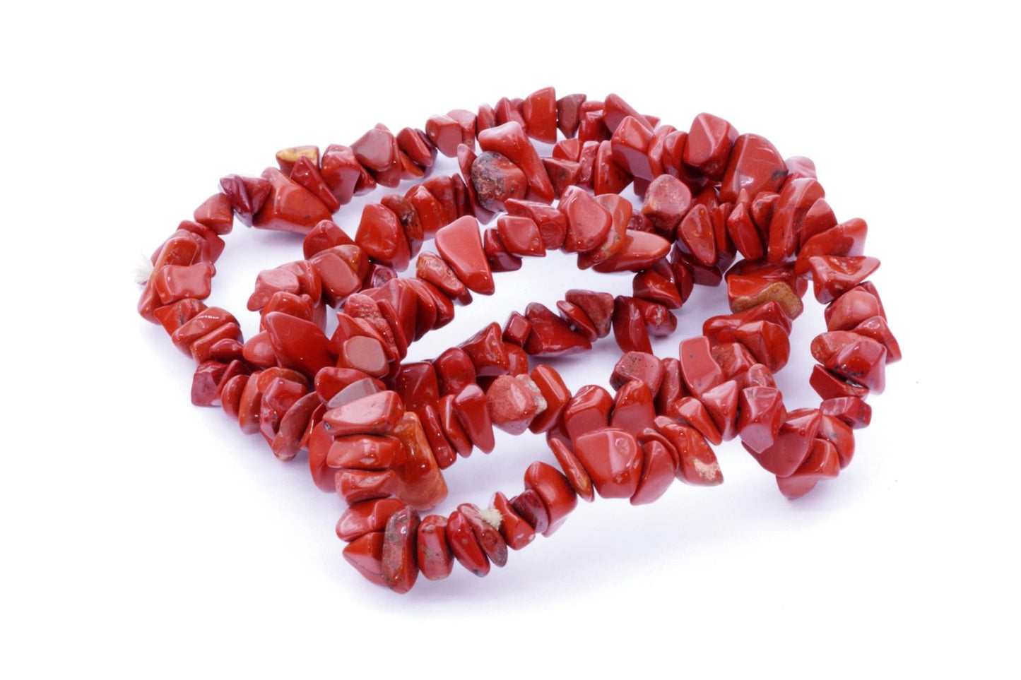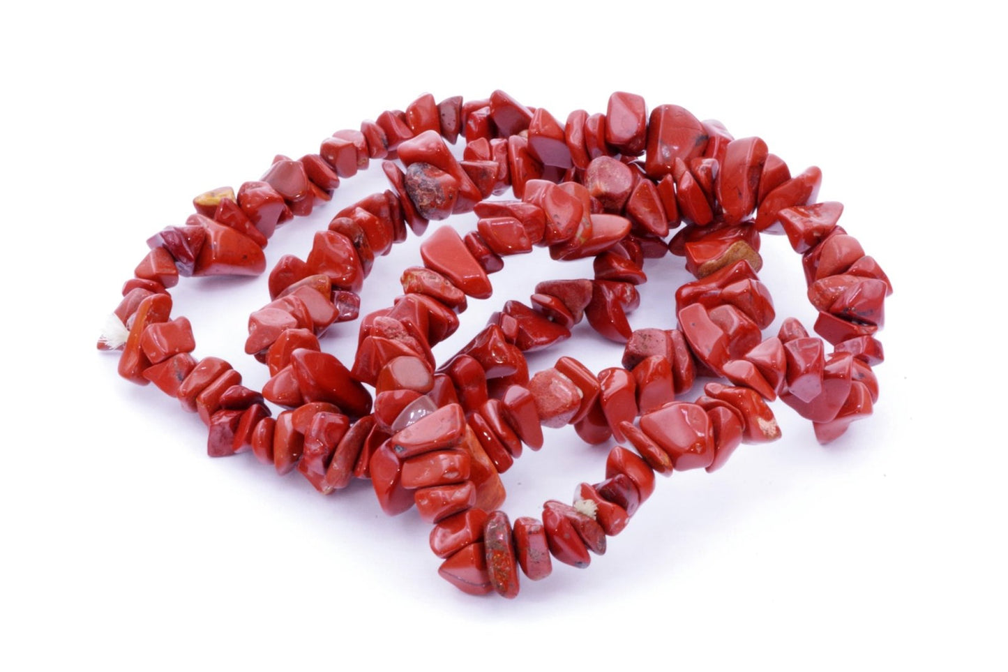 Raudonojo Jaspio Armband "Čipsiukai" är ett jordnära och energiskt smycke, kännetecknat av sin naturliga skönhet och klara färg. Tillverkat av små, naturligt formade chips av röd jaspissten, är detta armband ett utmärkt val för dem som gillar uttrycksfulla och färgstarka accessoarer samtidigt som de värdesätter stenarnas energiegenskaper.