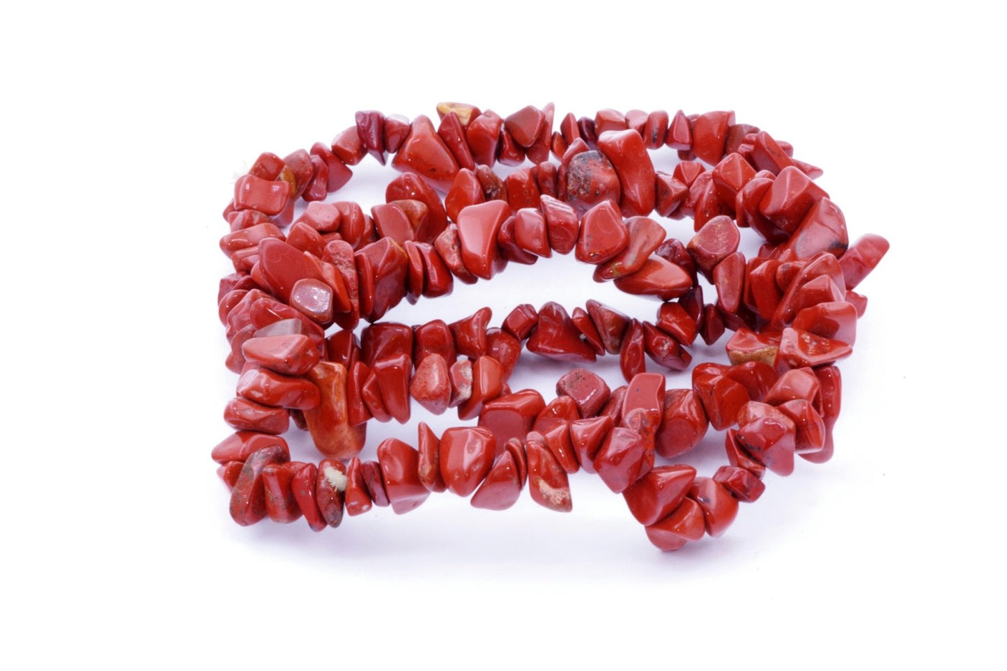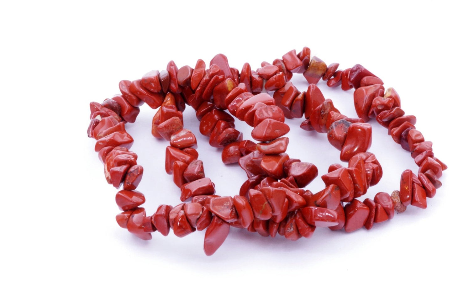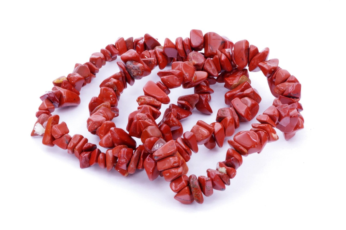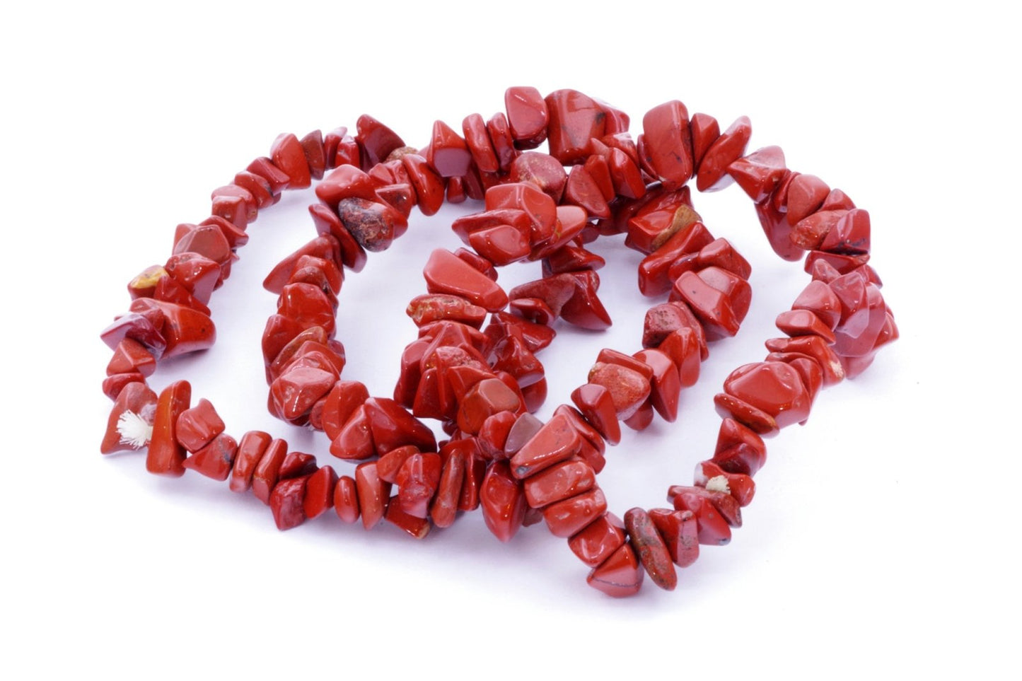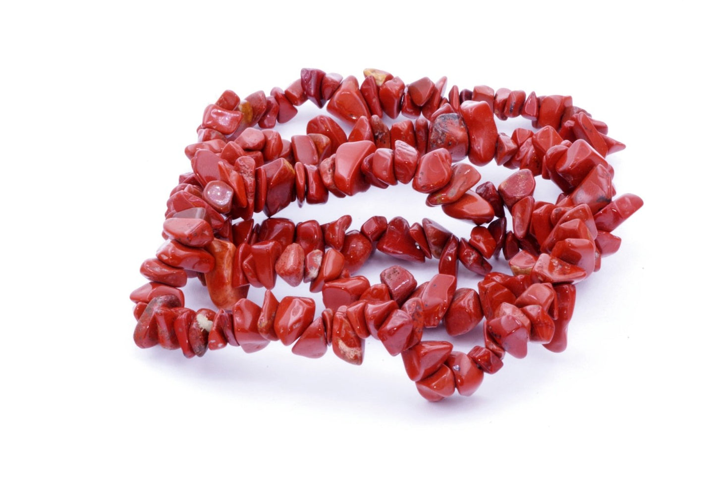 Raudonojo Jaspio Armband "Čipsiukai" är ett jordnära och energiskt smycke, kännetecknat av sin naturliga skönhet och klara färg. Tillverkat av små, naturligt formade chips av röd jaspissten, är detta armband ett utmärkt val för dem som gillar uttrycksfulla och färgstarka accessoarer samtidigt som de värdesätter stenarnas energiegenskaper.