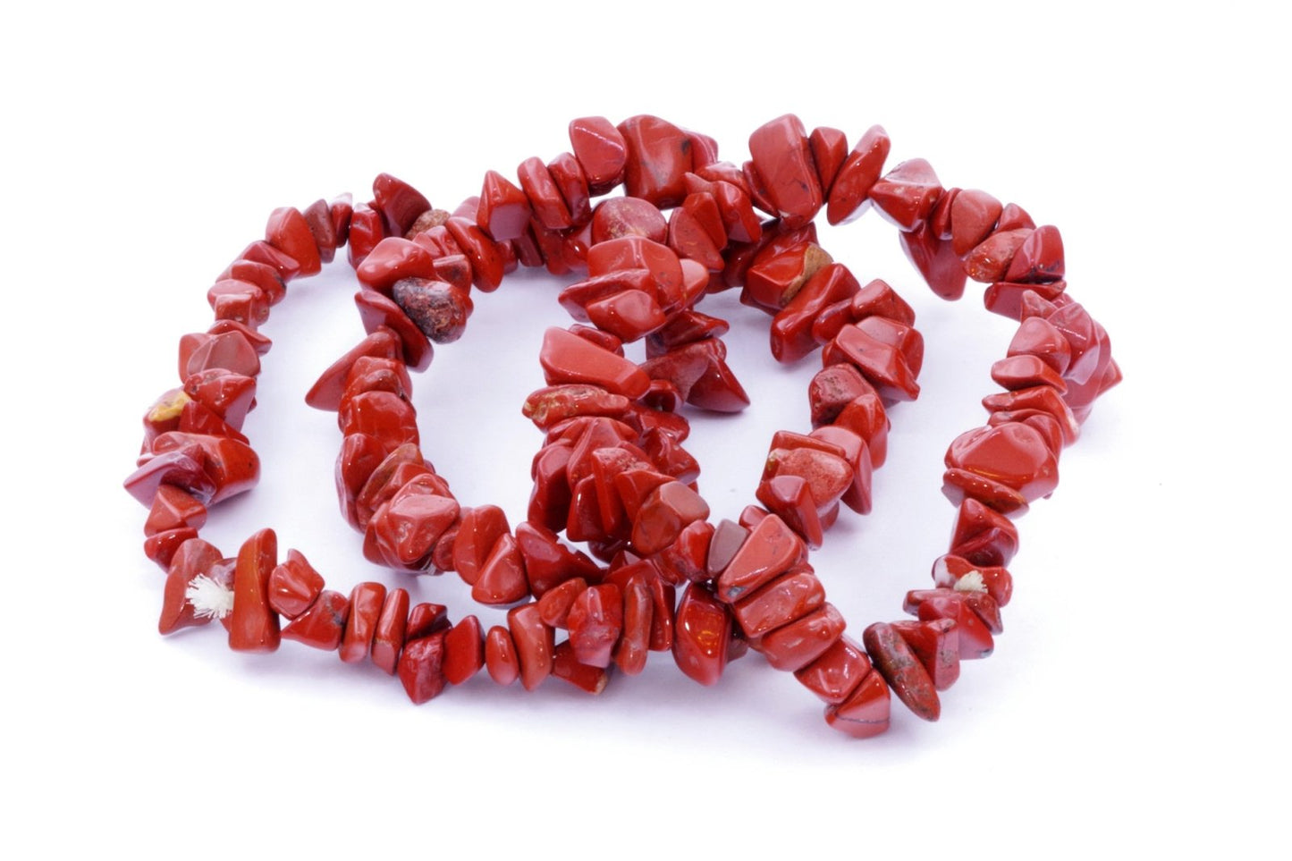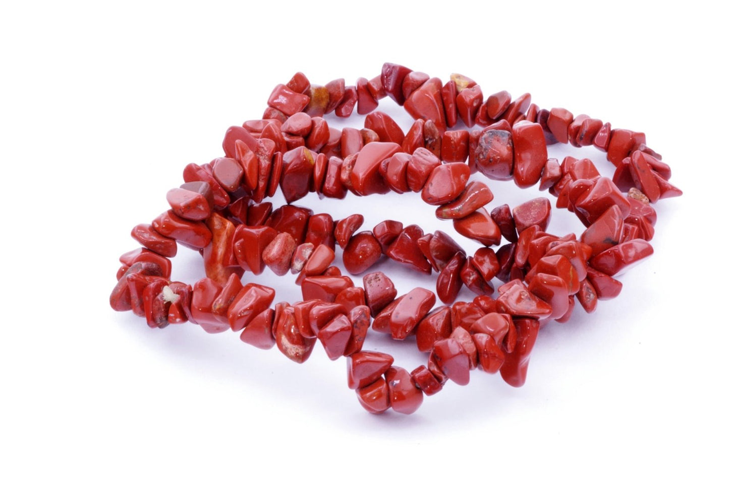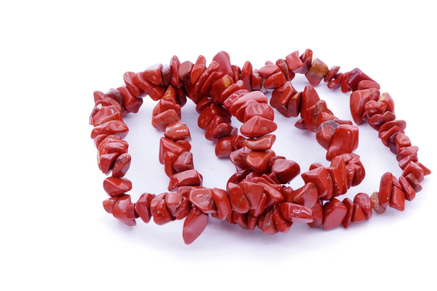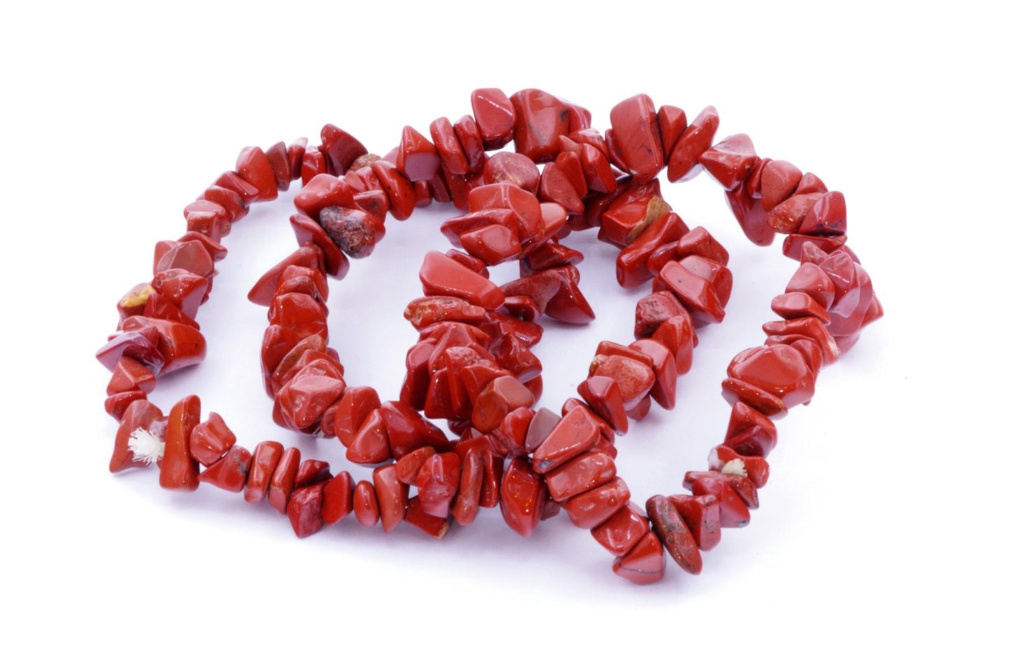 Raudonojo Jaspio Armband "Čipsiukai" är ett jordnära och energiskt smycke, kännetecknat av sin naturliga skönhet och klara färg. Tillverkat av små, naturligt formade chips av röd jaspissten, är detta armband ett utmärkt val för dem som gillar uttrycksfulla och färgstarka accessoarer samtidigt som de värdesätter stenarnas energiegenskaper.