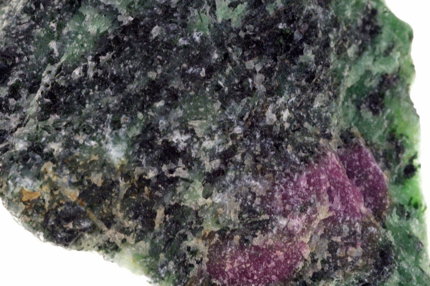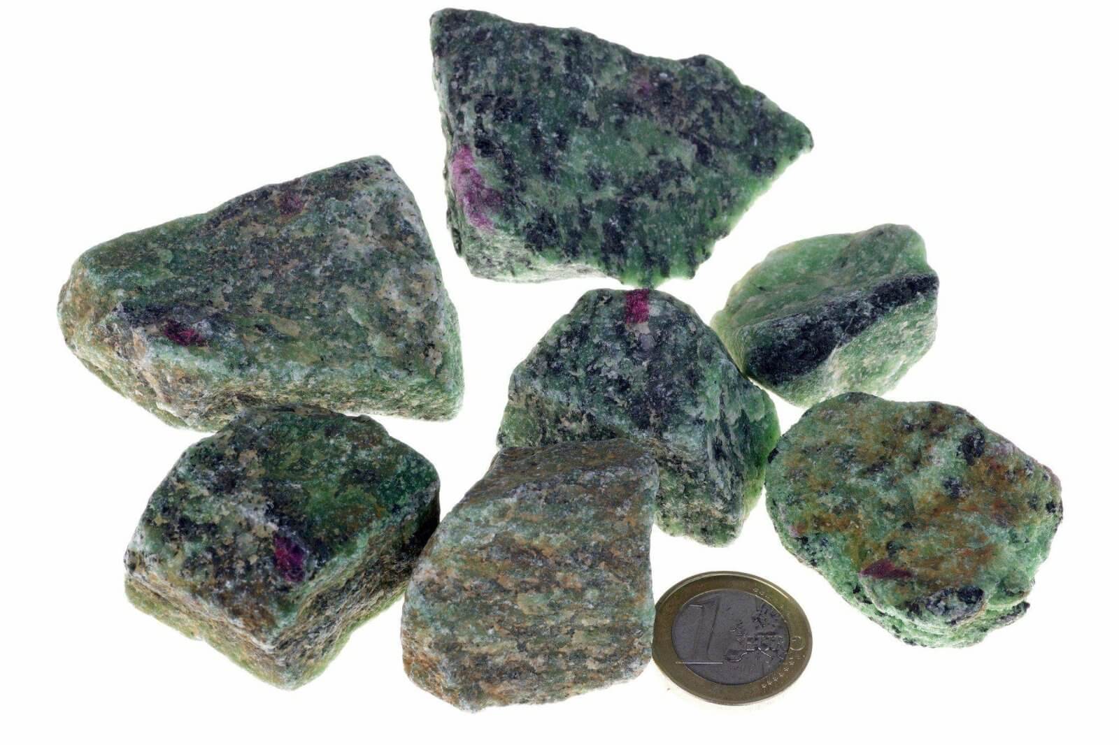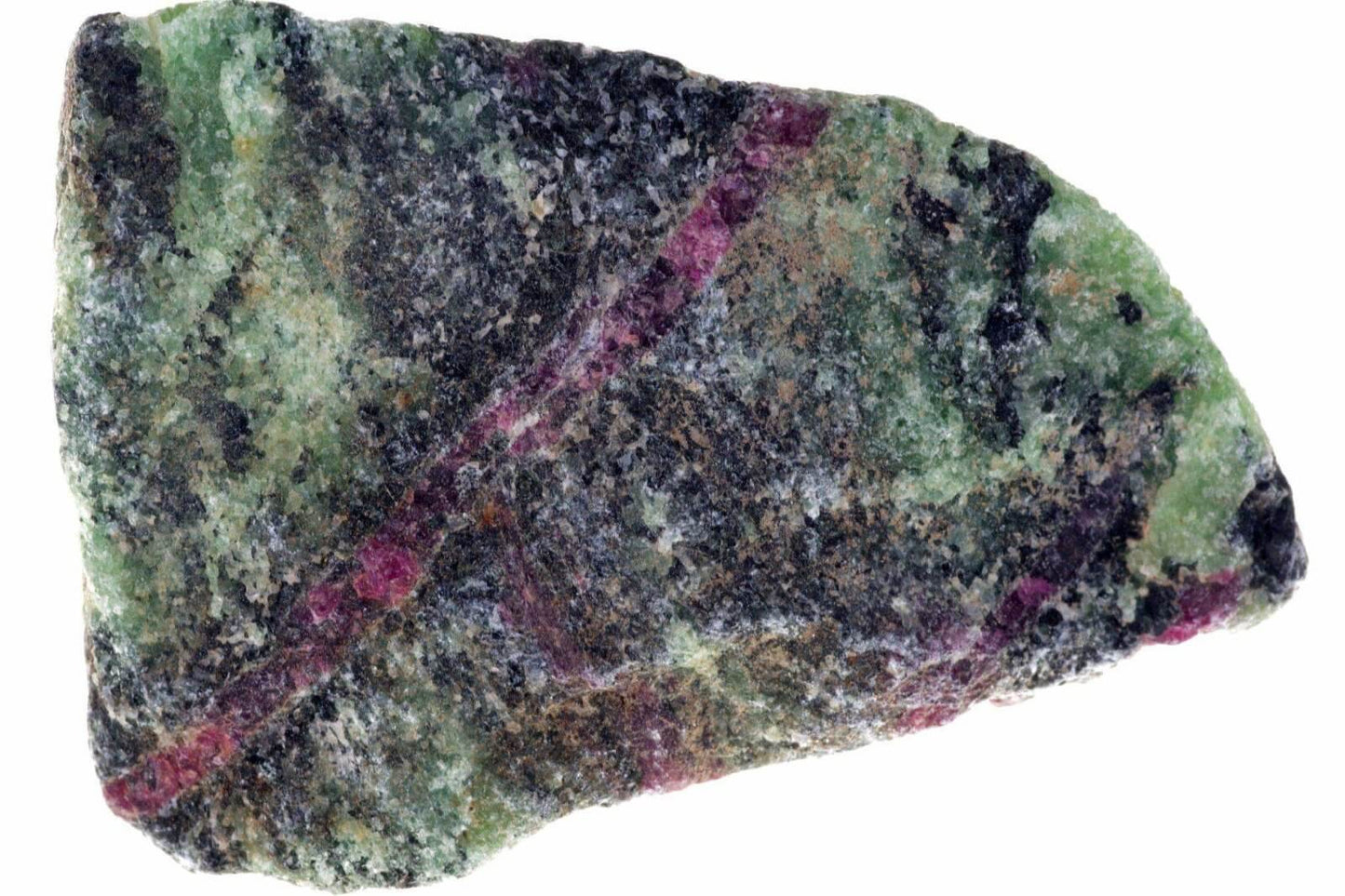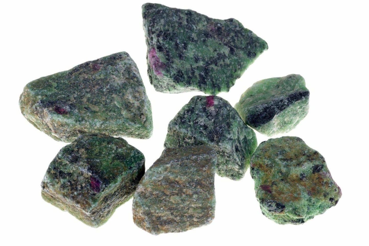 Sammansättning: Rubin är ett korundmineral, medan zoisit tillhör gruppen silikatmineraler.