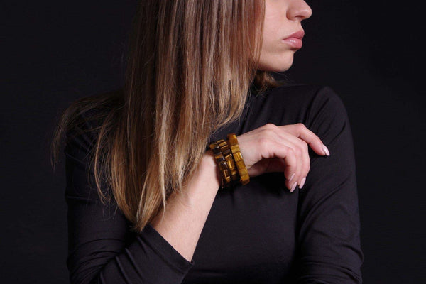 Upptäck ett modernt och stilrent smycke där tigergöga-stenarnas fyrkantiga form ger armbandsdesignen en unik och elegant touch. "Kvadratukai" är det perfekta valet för dem som värdesätter beslutsamhet, skydd och gillar uttrycksfulla men subtila accessoarer med en modern känsla.